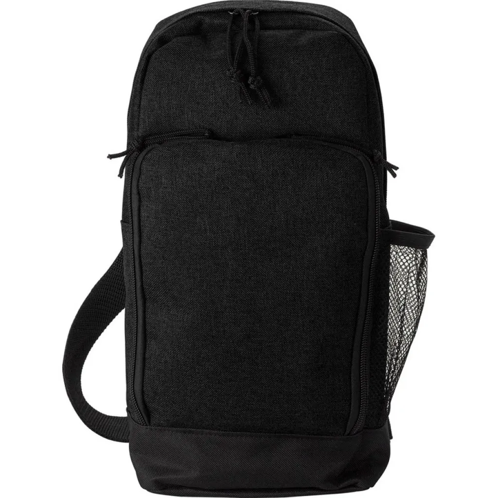 Shoulder bag, zipped main compartment and front pocket, mesh side pocket, adjustable shoulder strap