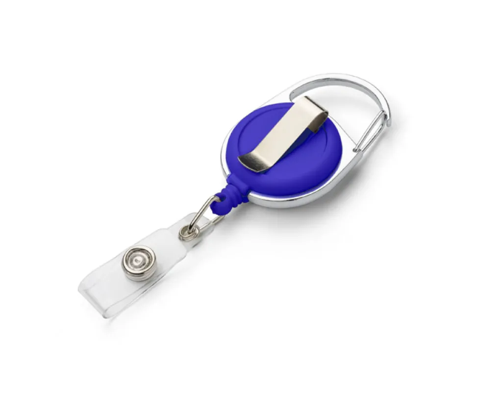 Skipass made of plastic with a metal hook and a carabiner with extendable wire. You can attach an ID or any other document to it.