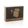 Unique double chargeable wireless earbuds with integrated solar panel in the casing made with RCS certified recycled ABS. Total recycled content: 21% based on total item weight. RCS certification ensures a completely certified supply chain of the recycled materials. The speaker uses high quality monocrystalline solar panels with 19% conversion rate. Charge rate depends on conditions. Charging speed solar: 5V/50mA. The perfectly fitting earbuds have a 35 mAh battery and can be re-charged in the 300 mAh charging case within 2 hour. With auto pairing function so easy to pair to your mobile device. Playing time on medium volume up to 5 hours. With BT 5.3 for optimal connection. Operating distance up to 10 meters. With pick up and mic. Including 3 size silicone ear tips. Including RCS certified recycled TPE charging cable. Packed in FSC® mix kraft packaging. Item and accessories 100% PVC free.