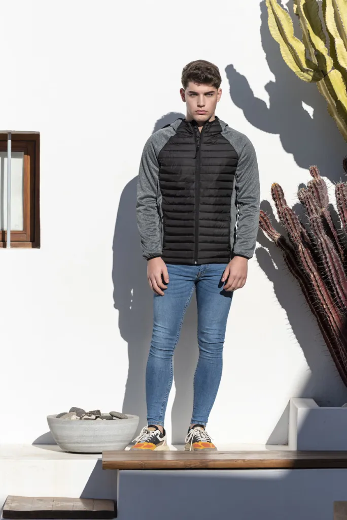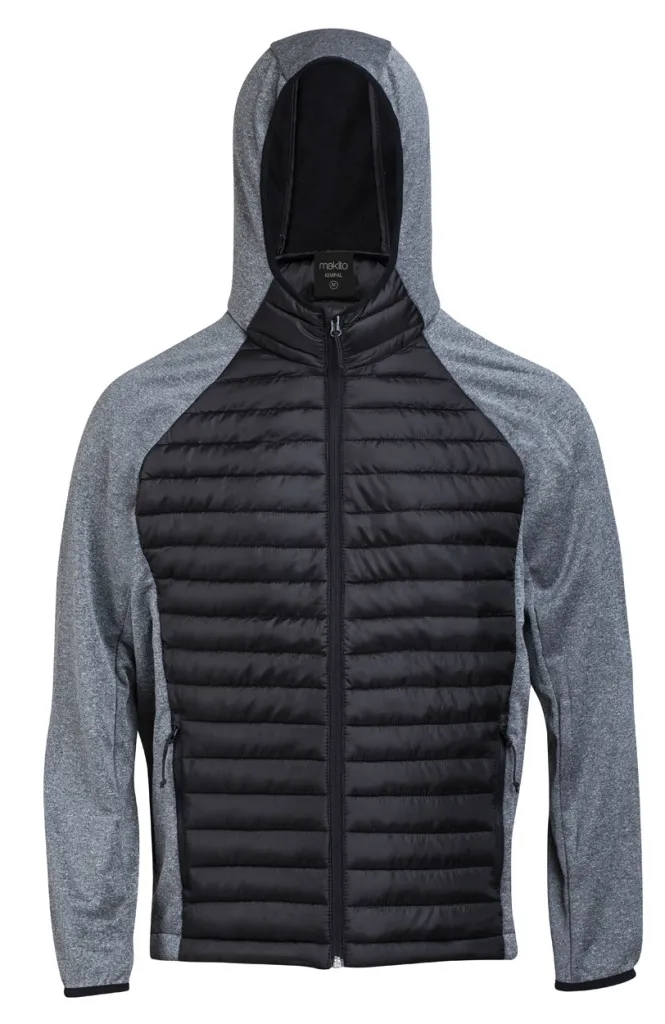 Water-resistant and breathable, zipped jacket in softshell-polyester combination with 2 zipped side pockets.