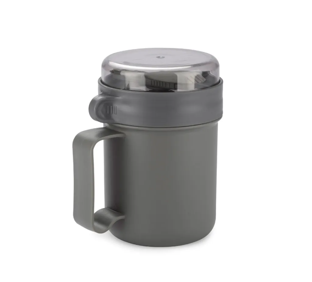 The NODSY soup container is a useful and practical gadget. This is a great solution to take soup with you, for example to work. It has a comfortable handle and a foldable spoon-fork attached. The container is suitable for use in microwave ovens, dishwashers and can also be frozen. Capacity 500 ml.