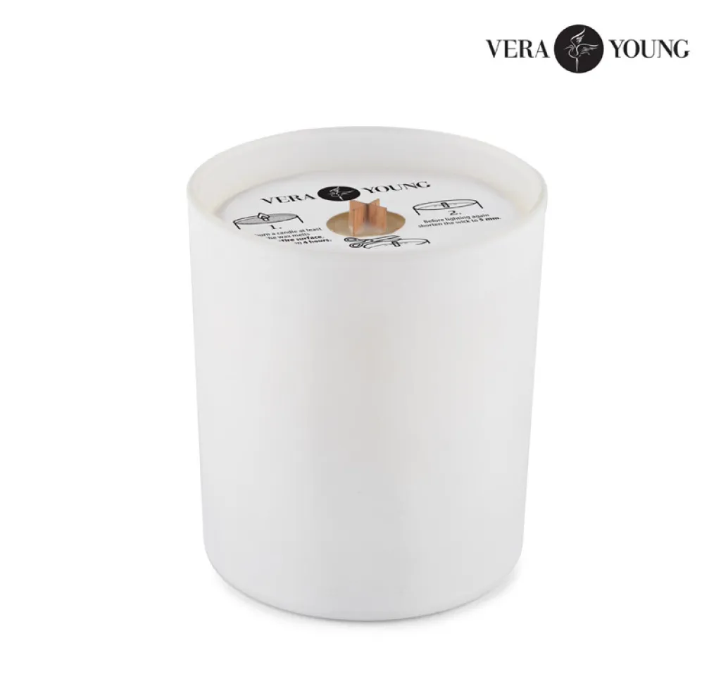 The premium soy candle by VERA YOUNG, is handmade from natural plant waxes. The fragrances used are created according to proprietary recipes specially developed for the Vera Young brand in Europe. The Library fragrance is a carefully created combination of unique notes: amber, incense and cashmere form the heart of this extraordinary candle. In addition, notes of ginger, vanilla, cinnamon and delicate touches of tobacco leaf are incorporated. The result of this aromatic marriage is a candle whose fragrance evokes a library atmosphere, filled with the scent of old, precious books. It is an amazing sensory experience that transports you into a magical world of literature, enveloping your interior with subtle elegance. Soy candles are a healthier and more environmentally friendly alternative to traditional paraffin candles. The absence of paraffin in the composition of VERA YOUNG candles is important because it means fewer toxins, better performance, a more environmentally friendly origin of the wax and a cleaner and more intense release of fragrances. The burning time of the candle is approximately 70 hours*. The candle has a wooden wick, which burns more evenly, longer and creates a pleasant crackling effect and emits less soot and smoke than . Each candle is packaged in an elegant cardboard box and has a description on how to use it, so that everyone can enjoy this special gift for as long as possible. * VERA YOUNG candles burn 20 hours longer than candles from other manufacturers of the same capacity. Ecological candle, safe for health, free of harmful substances. The wooden wick may vary in appearance depending on the type of production. Manufactured in the EU.