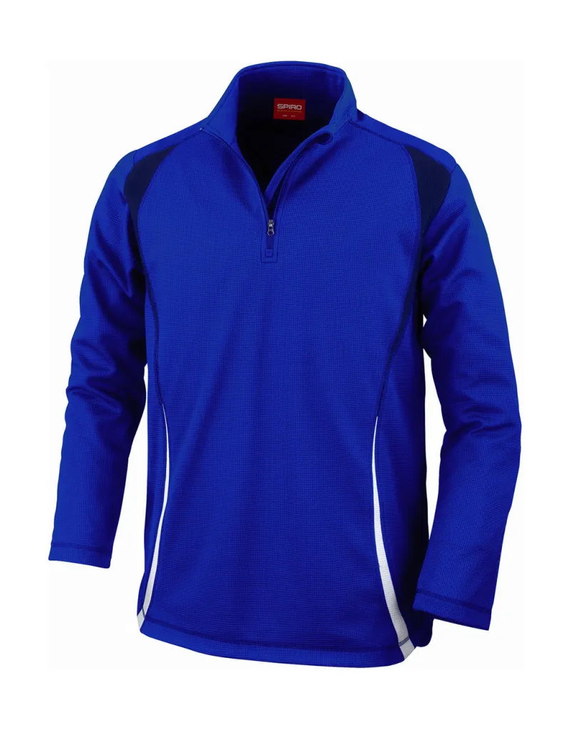 ·185 g/m² ·100% Polyester (Dense Waffle Knit) ·Long sleeve function shirt ·Stand-up collar ·1/4 zip with chin protection ·Colour contrast gussets up front and on back ·Stripe pattern on lower sleeve ·Decorative stitching on sleeve and bottom hem ·Side seams ·Suitable for embroidery and transfer print.