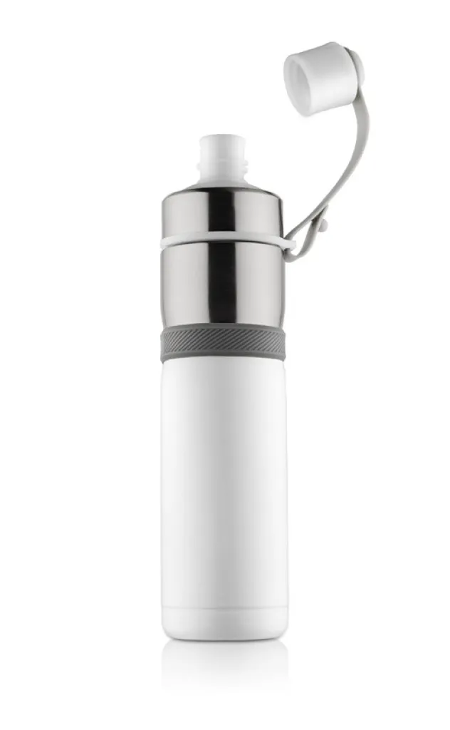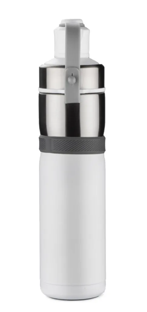 A sports bottle with vacuum is a perfect gadget for summer bicycle trips. Thanks to used vacuum isolation the bottle keeps the temperature of either cold or warm liquid. A handy closure attached to string is very usefull for an active user. The bottle is made of high quality stainless steel.