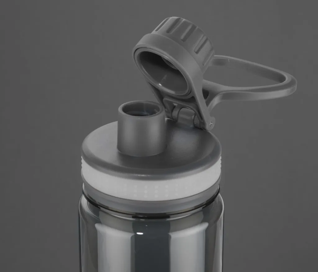 GREY is a capacious water bottle with a comfortable mouthpiece. The water bottle equipped with an additional handle will be useful for a lover of active recreation. It is distinguished by a colourful silicone band, which gives it a bit of dynamic character. The water bottle has the capacity of 700 ml.
