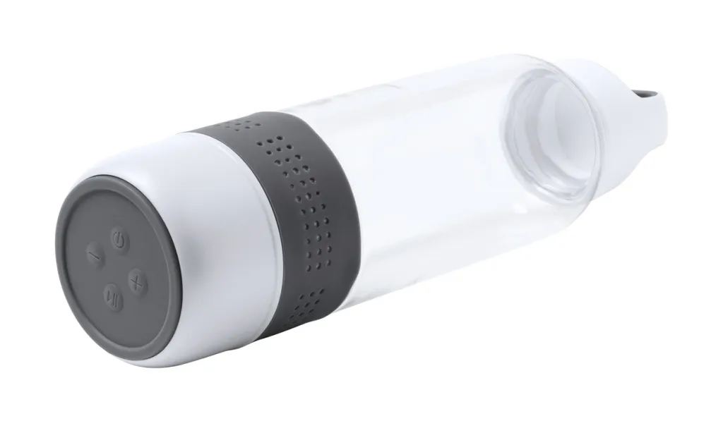 Multifunction sport bottle with built-in bluetooth speaker, handsfree call function and micro SD card reader in BPA-free tritan. In gift box, including USB charger cable. 600 ml.