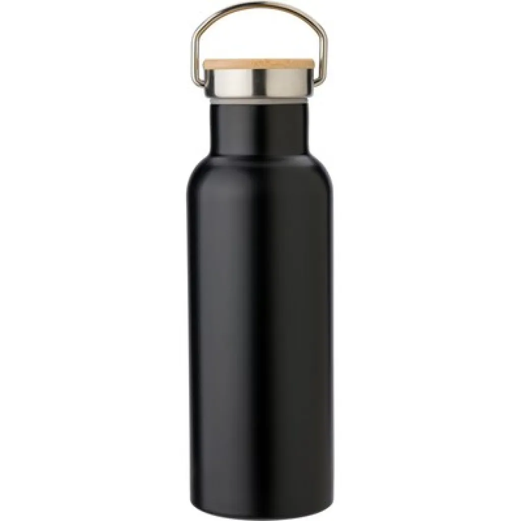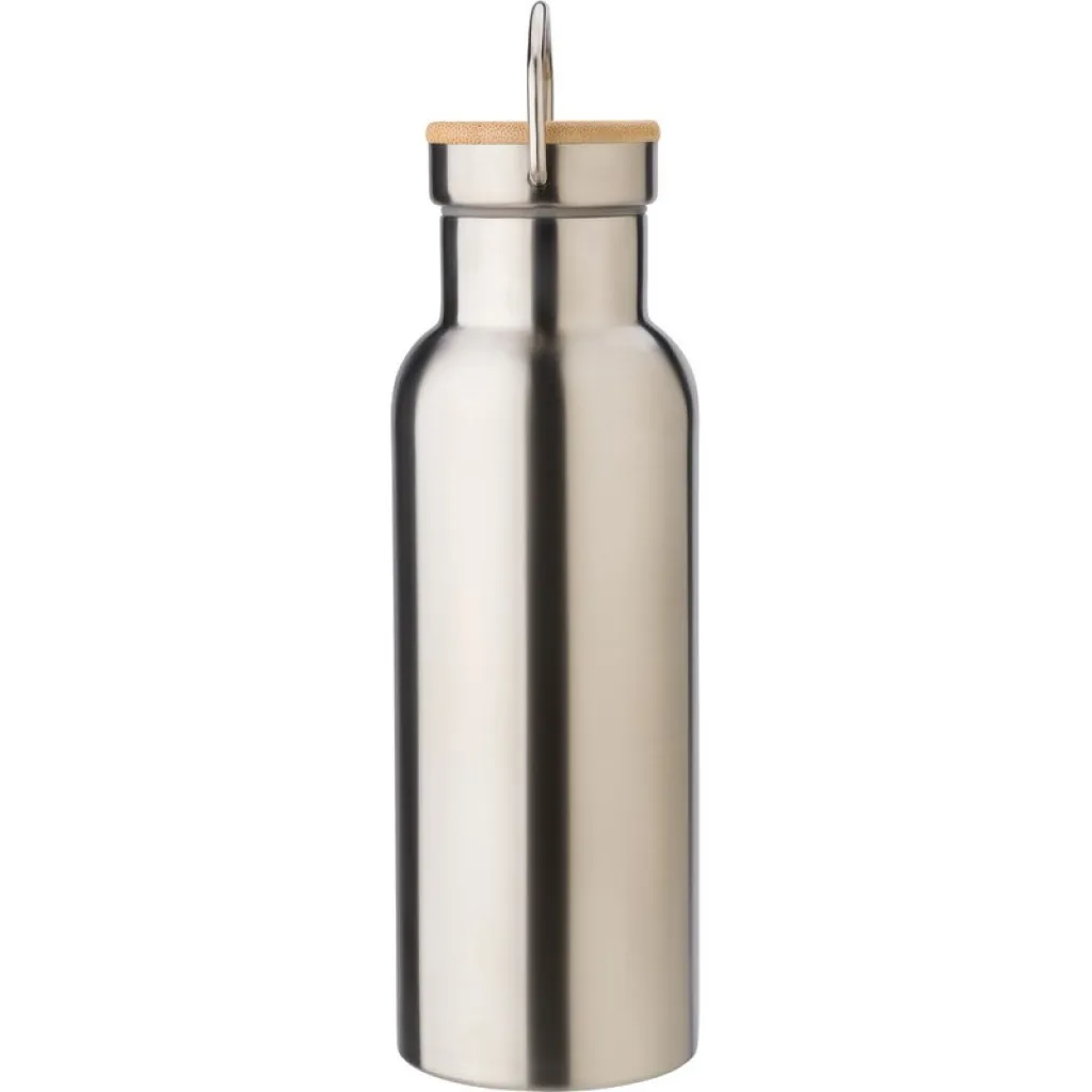 Sports bottle 500 ml, double walled, stainless steel inside and outside, bamboo screw