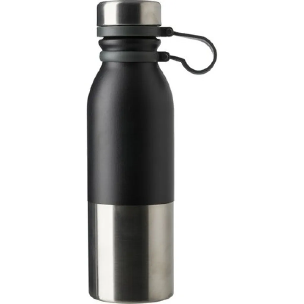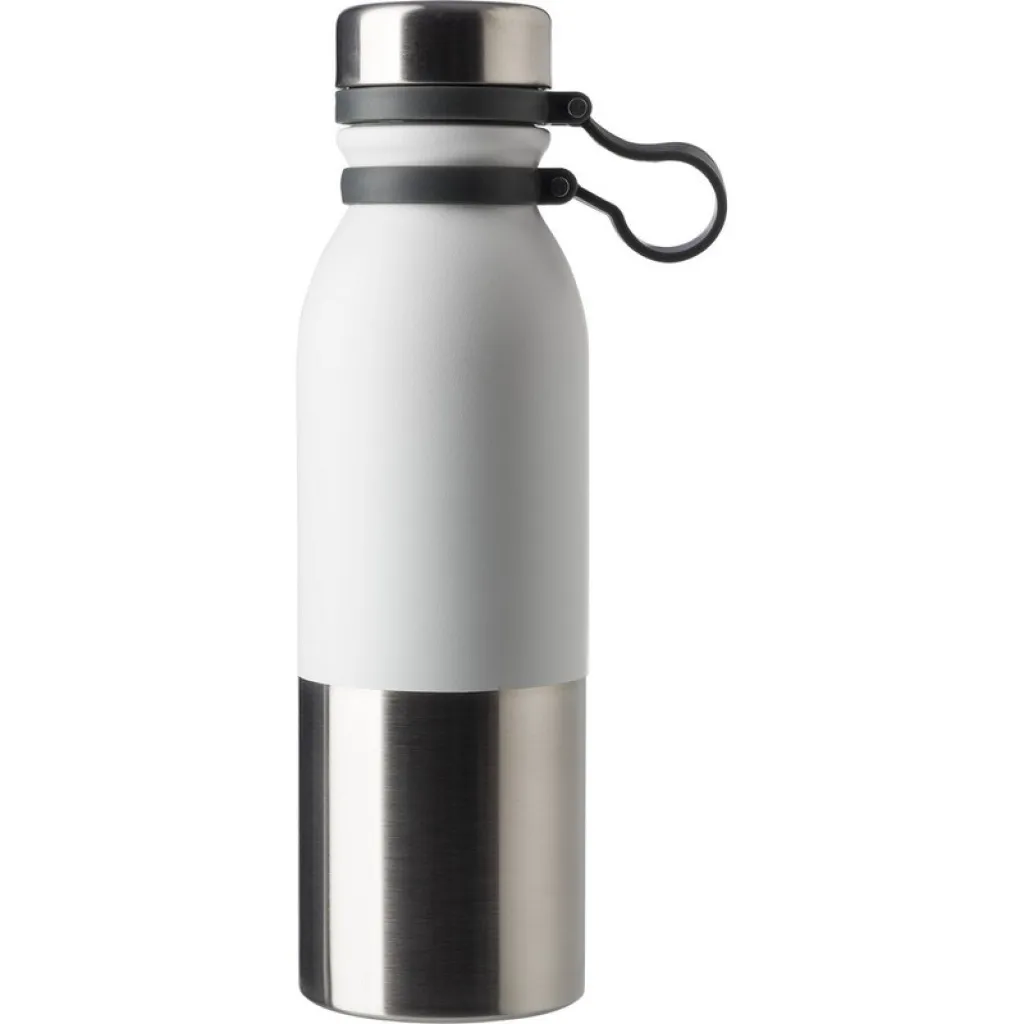 Stainless steel sports bottle 600 ml, double walled, cap attached to bottle with silicone strap