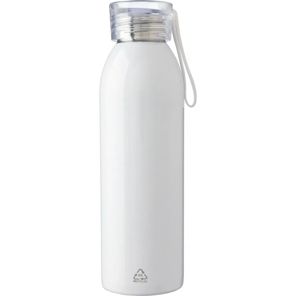 Sports bottle 650 ml, made of recycled stainless steel, includes a single wall, silicone handle for easier carrying, includes recycled stainless steel icon on the product, packed in a brown carton box