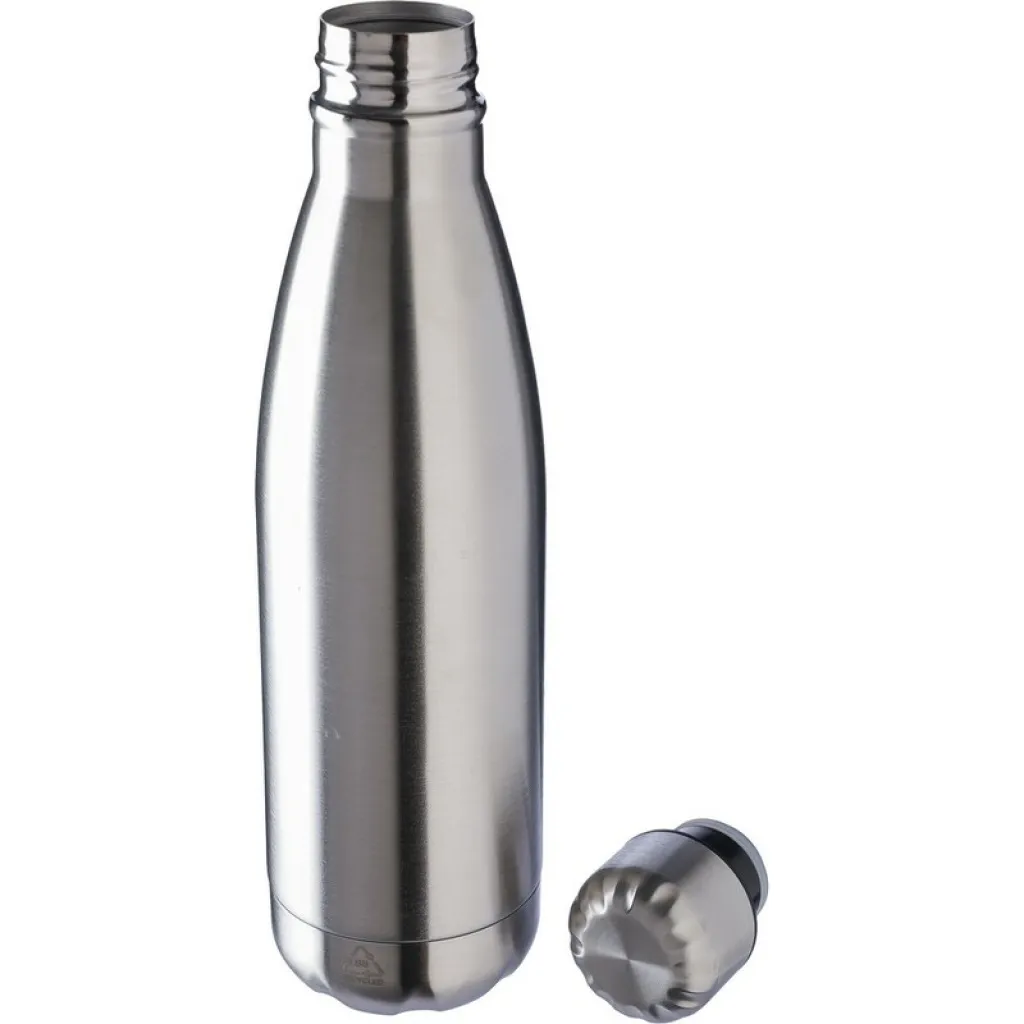 Sports bottle 650 ml, includes recycled stainless steel icon on the product, packed in brown carton box, product made of recycled stainless steel