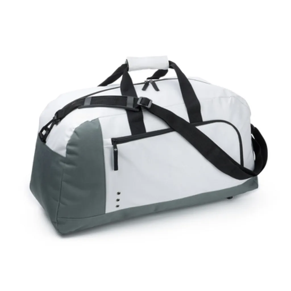 Sports, travel bag with zipped main compartment and external pocket, adjustable shoulder strap