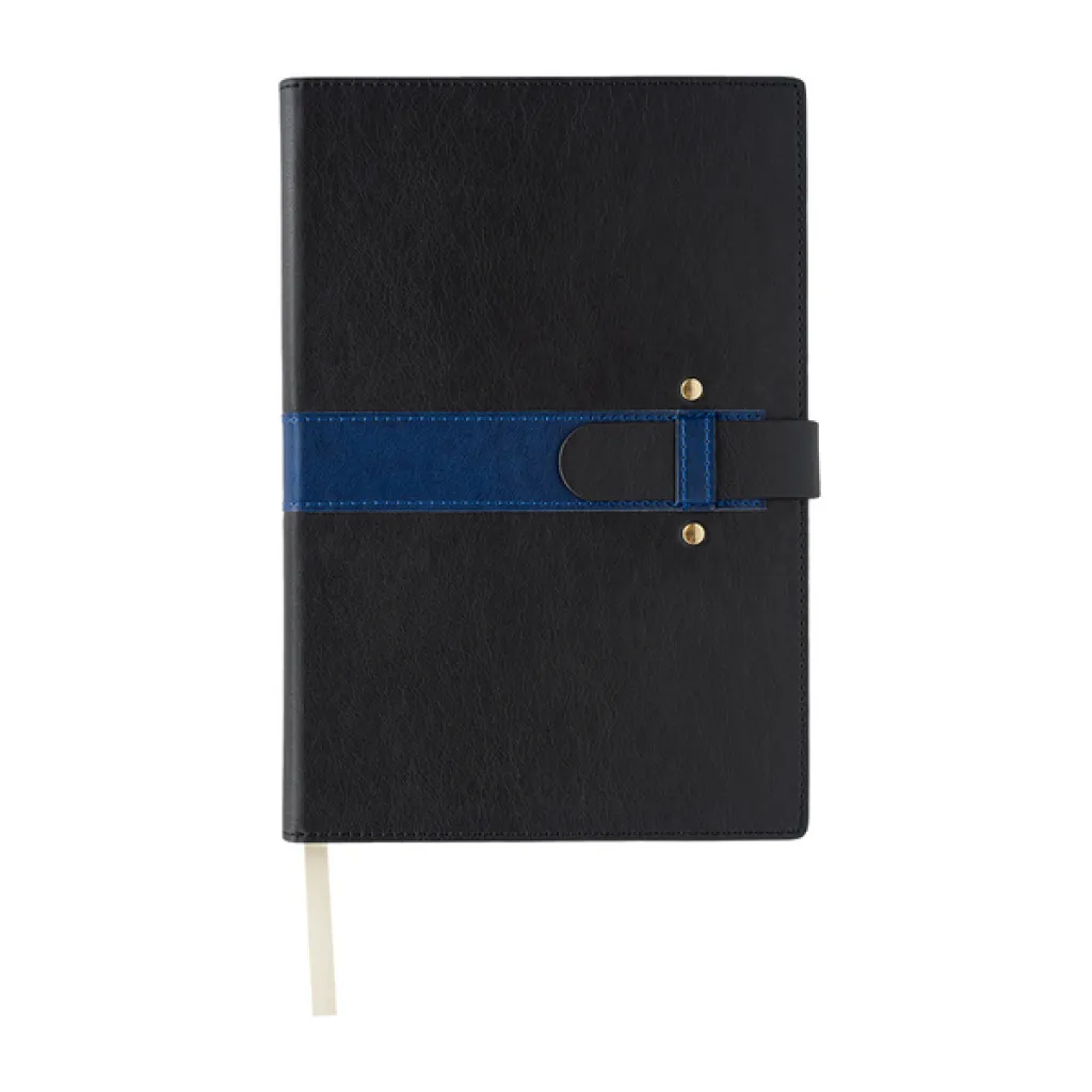 A 120-page checkered notebook (70g/m2) in hardcover. It has a ribbon to mark the pages.