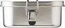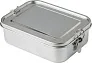 Stainless steel (s/s304) lunch box (1100 ml) with buckle closing. Individually packaged in a brown cardboard box.