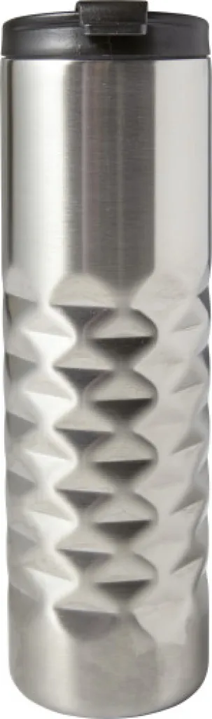 Stainless steel (s/s304) thermos flask (460 ml), double walled. The lid has a drinking opening with cap.