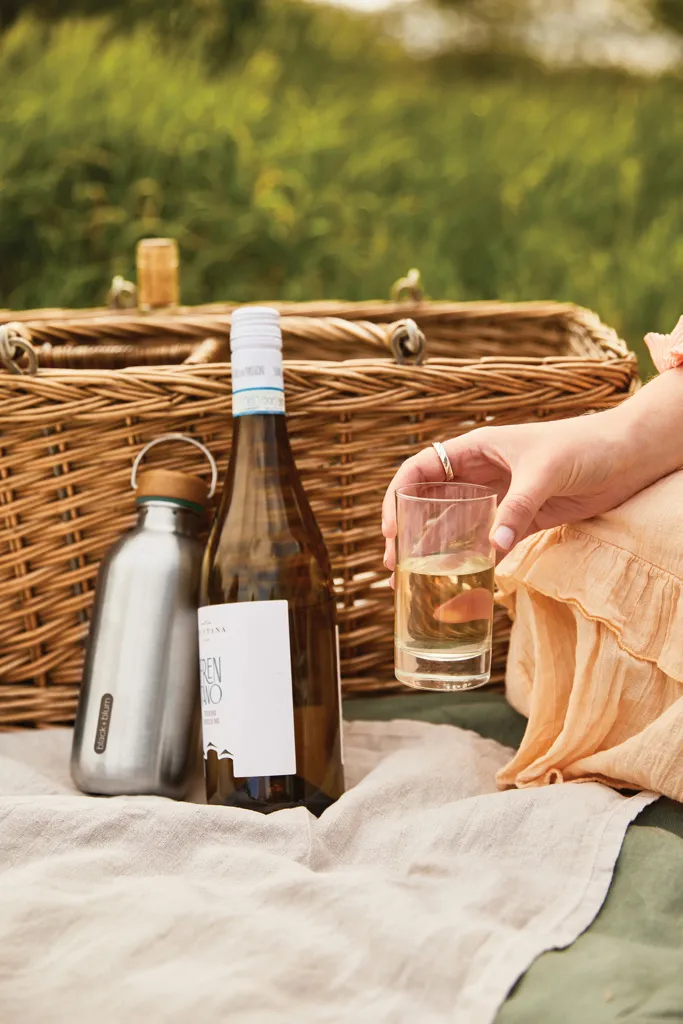 A lightweight and compact 600ml high quality stainless steel bottle with a sustainably sourced PP lid. The stainless steel and PP lid feature a convenient carry loop. Handwash only