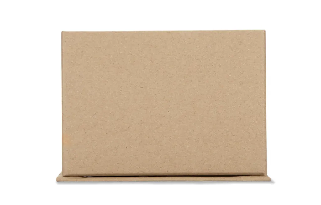 The MEFO box is made of brown paper. It serves as a desk toolbox. It has space for pens or other selected utensils, sticky notes for taking notes, as well as space for a business card.