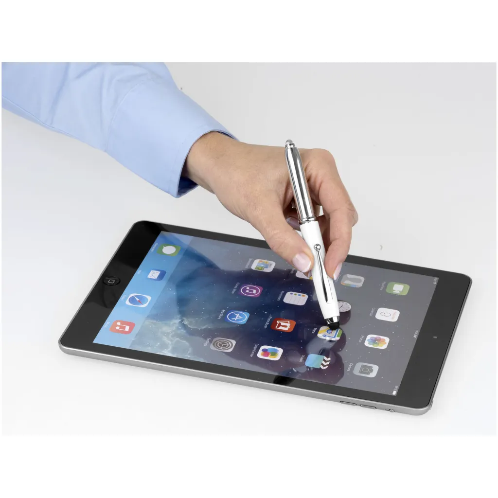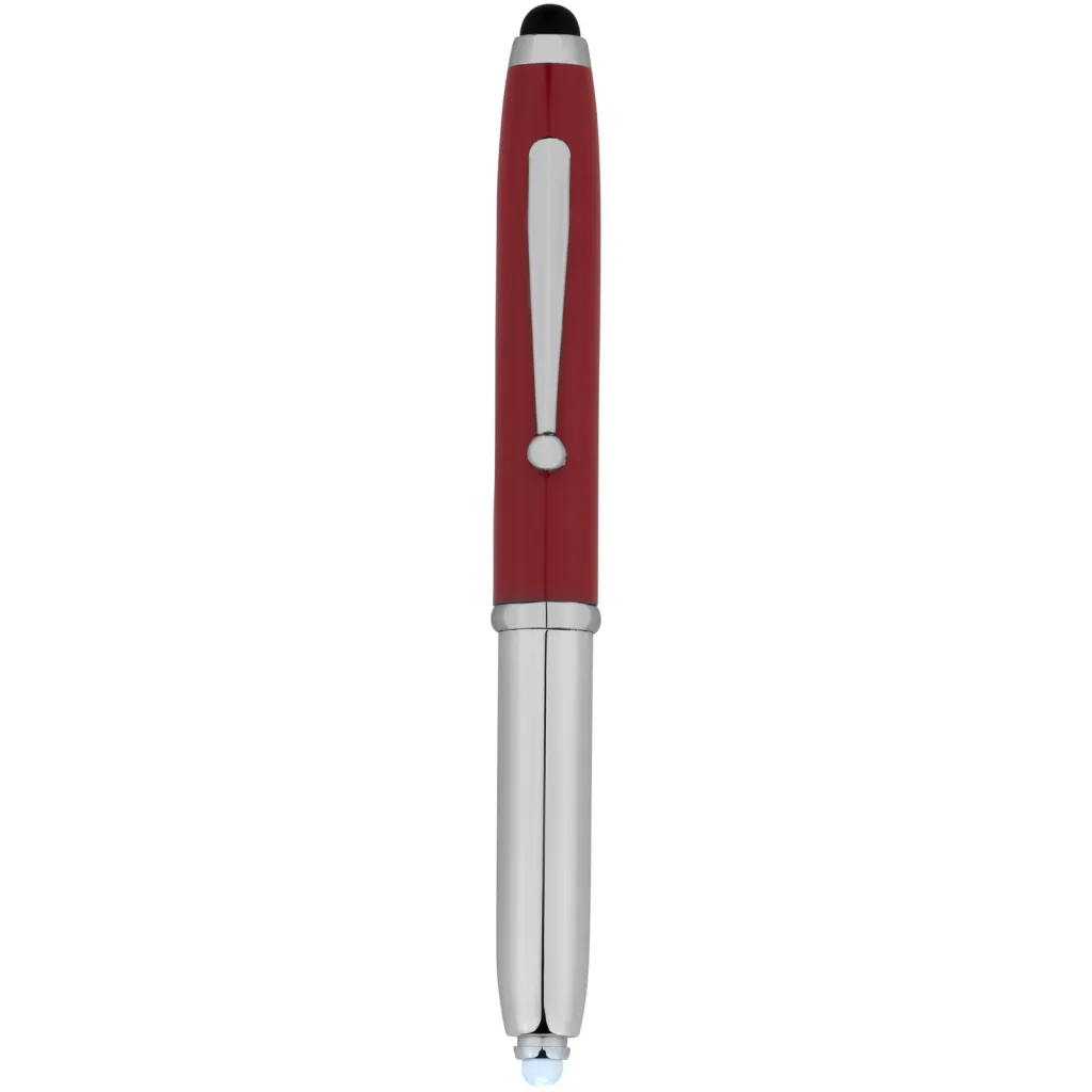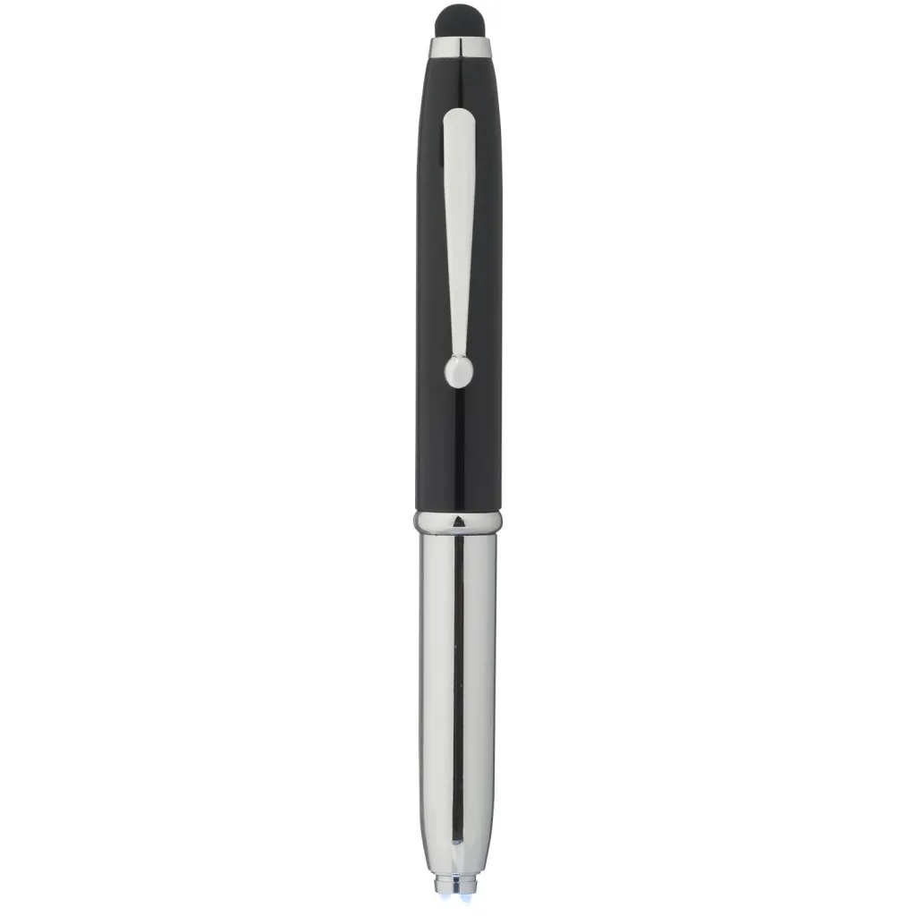 Stylus ballpoint pen with single LED flashlight and removable cap. Batteries included.