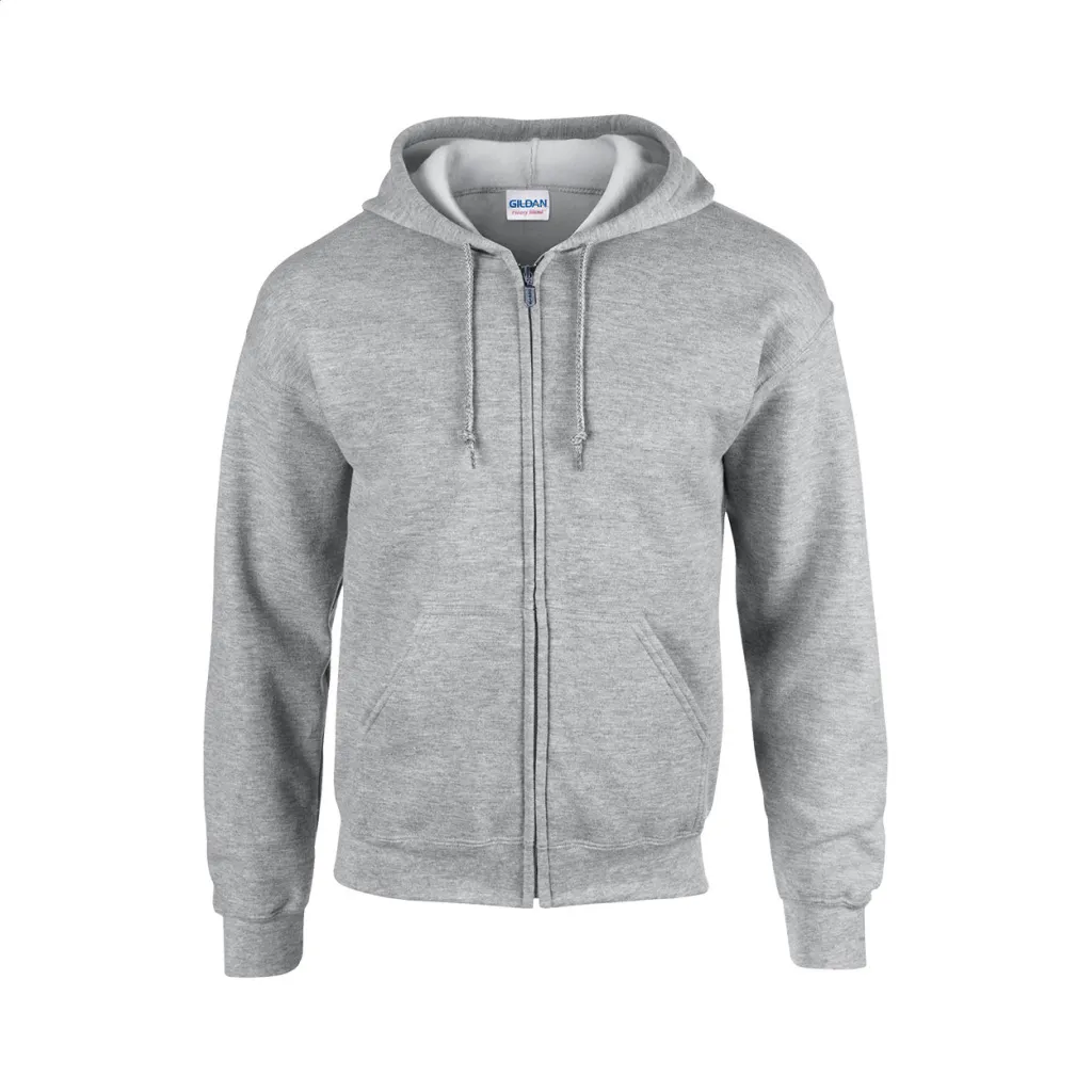 50% cotton / 50% polyester preshrunk fleece sweatshirt with hood, metal zipper and pouch pockets, 271 g/m² (white 257 g/m²).