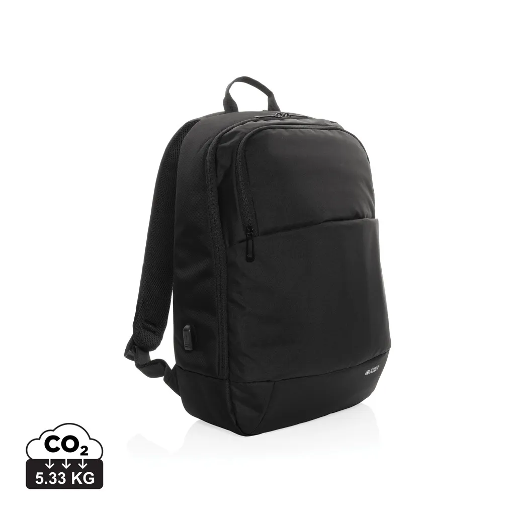 This beautifully designed backpack will suit all your needs! Featuring one large main compartment for your 15.6 inch laptop and one front compartment. Connect your power bank easily to the integrated USB charging port and charge your phone or tablet on the go. With AWARE™ tracer that validates the genuine use of recycled materials. Each bag saves 17.1 litres of water and has reused 28.7 0.5L PET bottles. 2% of proceeds of each Impact product sold will be donated to Water.org. PVC free.