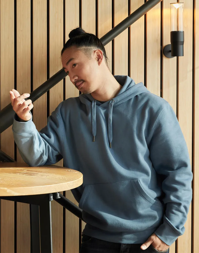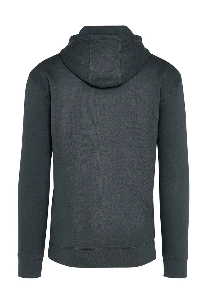 ·300 g/m² ·80% Cotton, ringspun and combed, 20% Polyester (Recycled) ·Light Oxford: 73% Cotton, 20% Polyester (Recycled), 7% Viscose ·100% cotton outer face for better print and softer handfeel ·Low shrinkage fabric with soft touch handfeel ·Brushed and anti-pilling inside ·3 panels hood for an enhanced fitting with Single Jersey hood lining in matching colour with flat chunky drawcords ·Recycled metal eyelets and drawcords' end tips in antique brass ·Contrasted herringbone necktape (Light Oxford for Snowwhite, Ash Grey for other colors) ·Flatlock stitching on hood, pocket, shoulders and bottom hem for a trendy look ·Ribbed bottom hem and cuffs ·Bartacks on top and bottom pocket opening for better resistance ·Side seams ·Half moon back yoke for inside neck branding purposes ·Tagless (size label off-centered in the neck for rebranding).