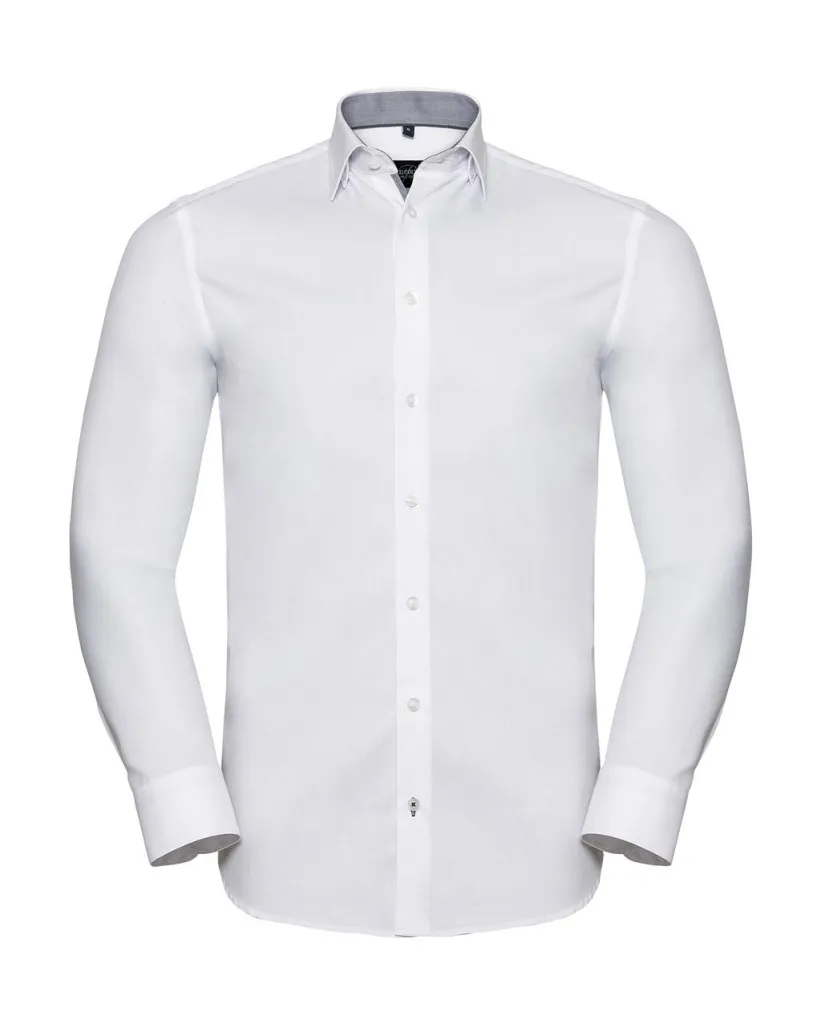 Tailored Contrast Herringbone Shirt LS - Russell Collection