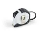 Tape measure 5 m long with drop lock. Case made from plastic and rubber for easy grip. Logo will be printed.