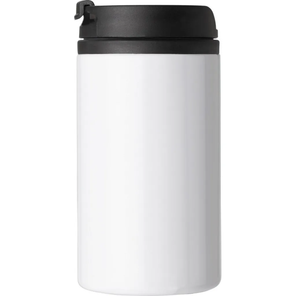 Thermo mug 300 ml, double walled, stainless steel outside, plastic interior, leakproof, anti-slip underside