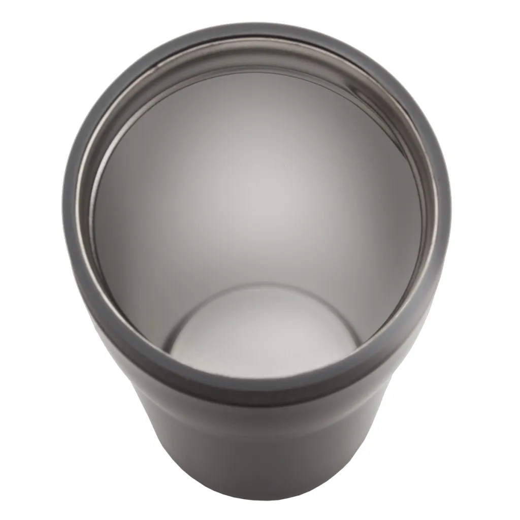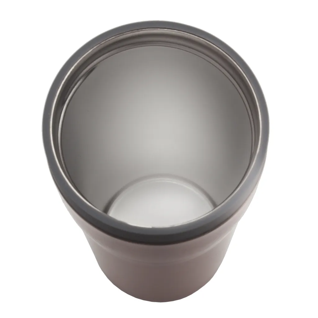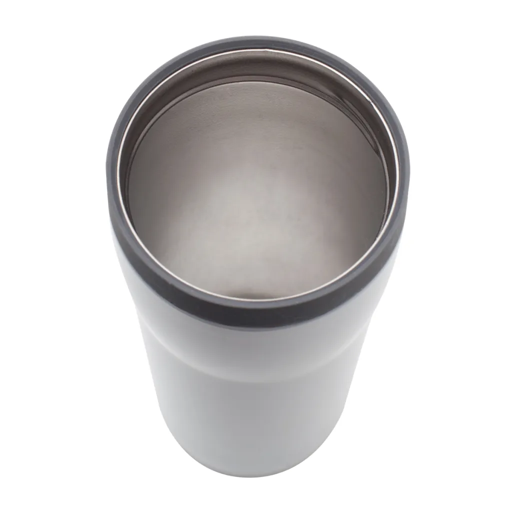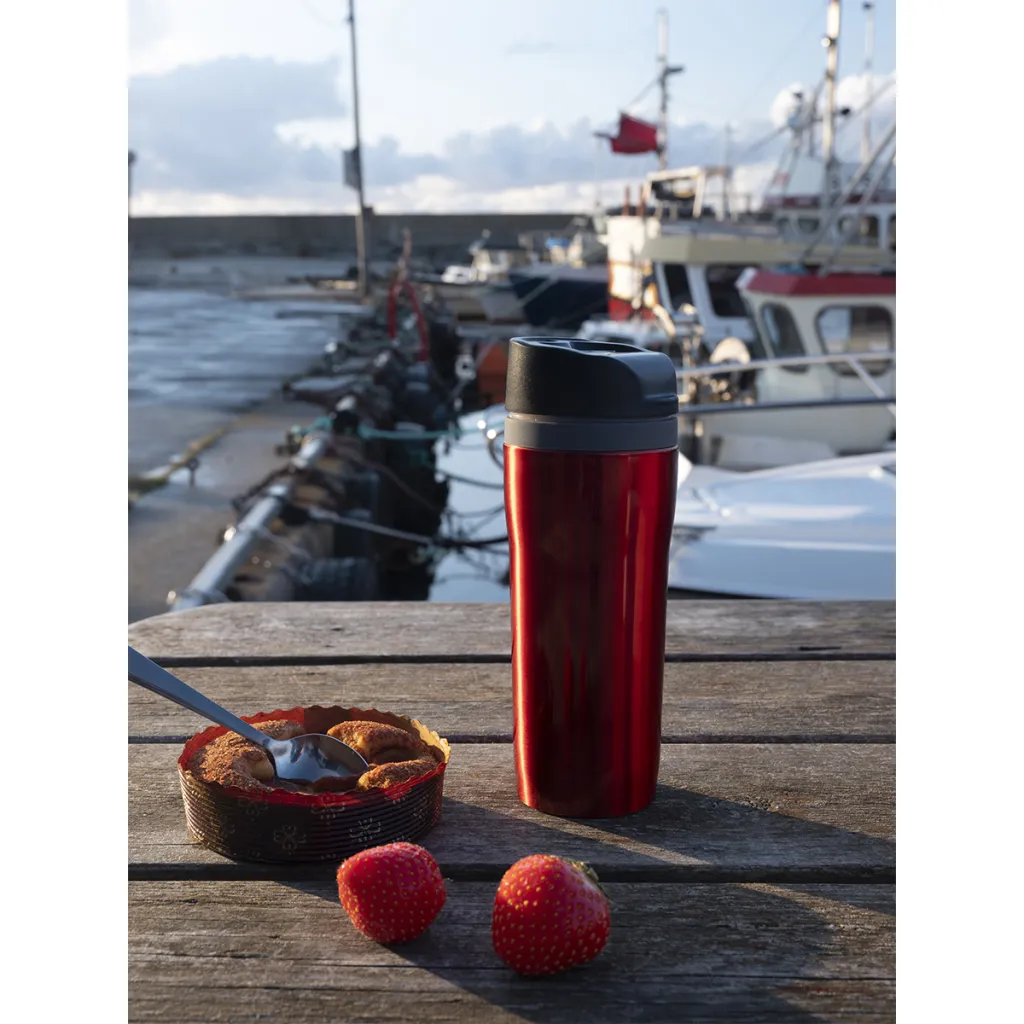 350 ml mug with 18/8 stainless steel interior and Open-close opening. Thermal Insulation 12 h. Possibility to add a coloured decorative ring FANCY.