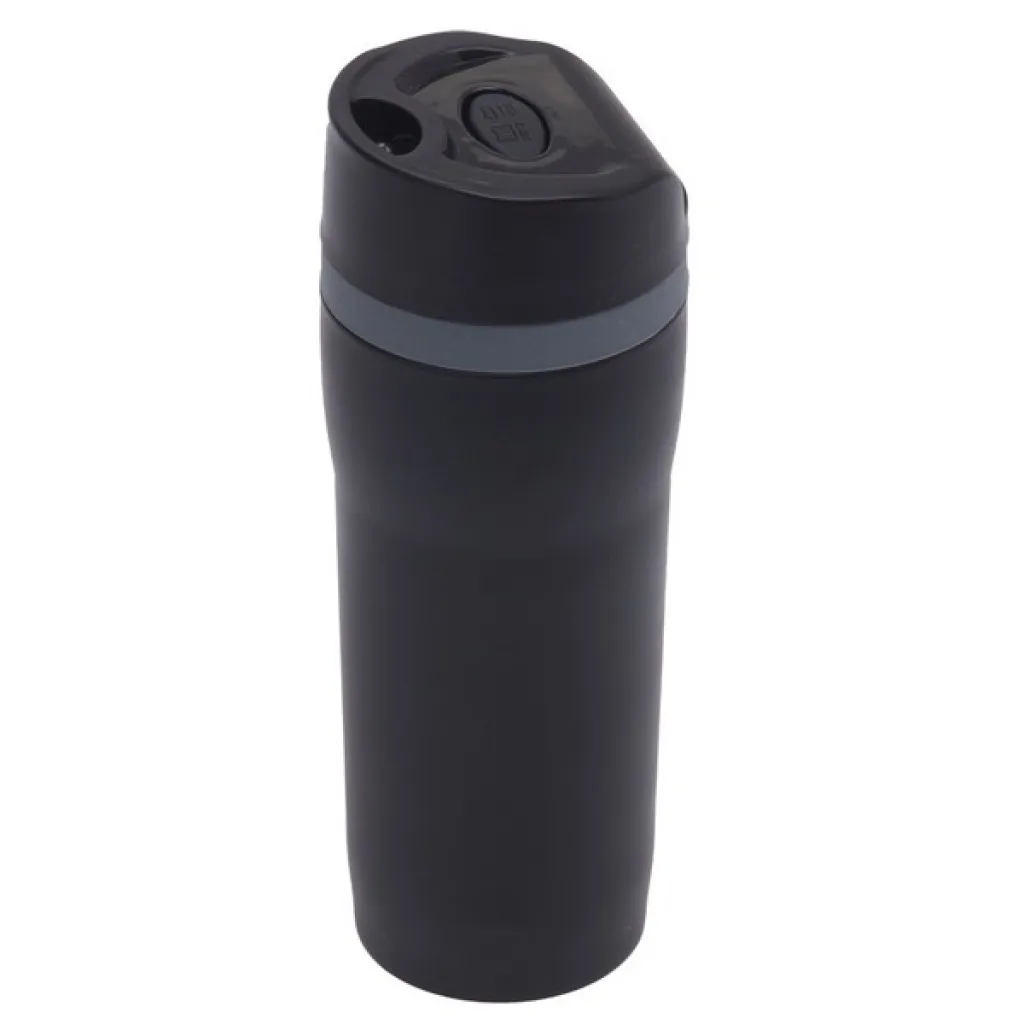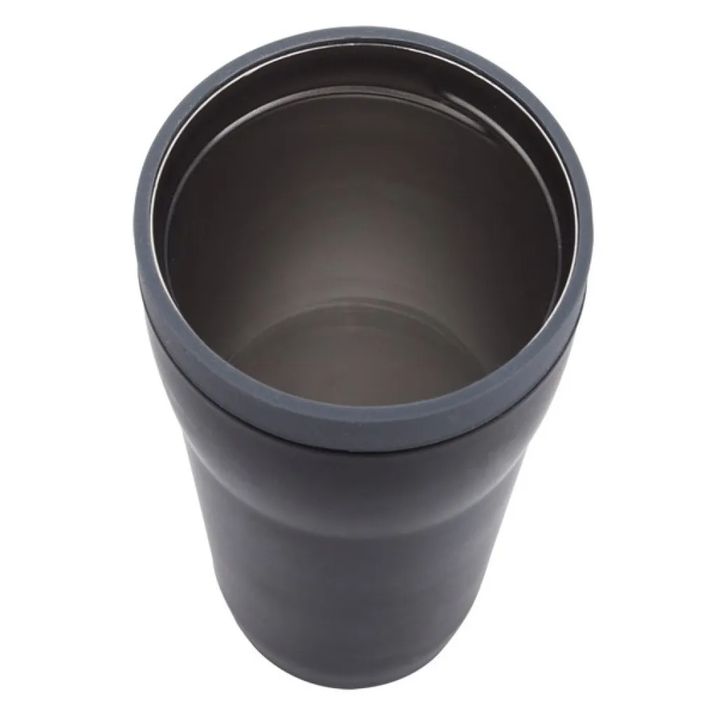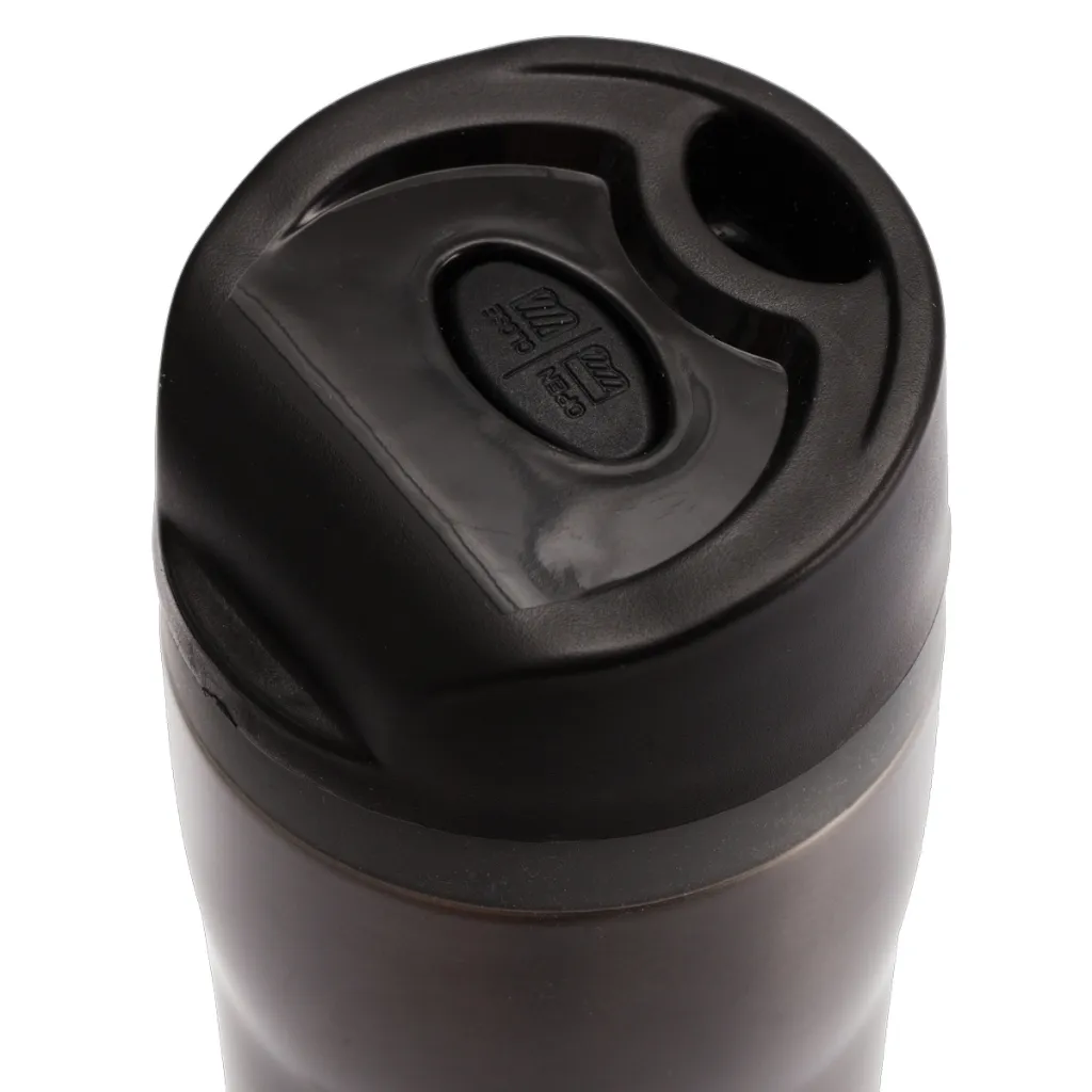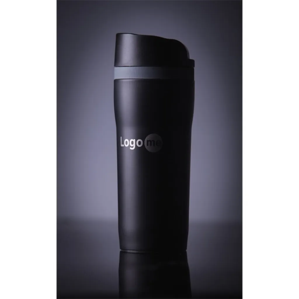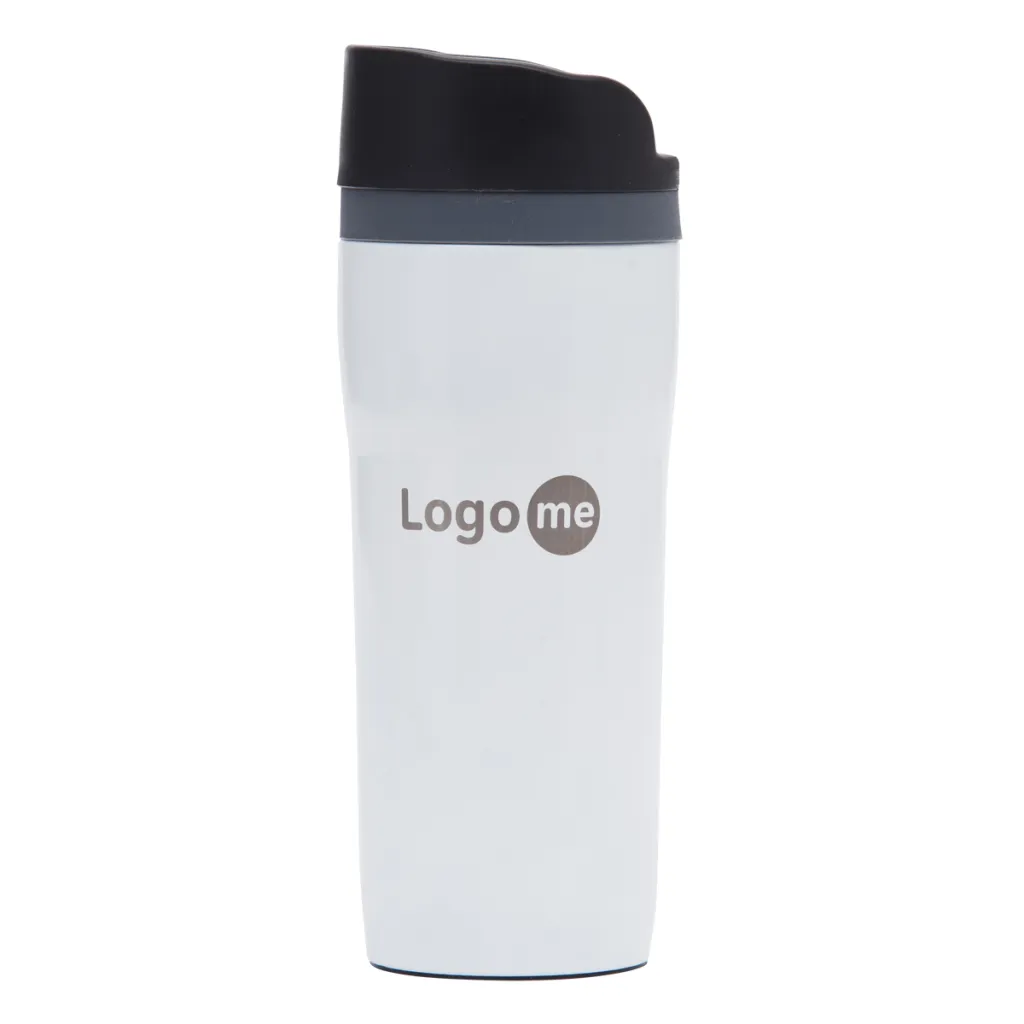 350 ml mug with 18/8 stainless steel interior and Open-close opening. Thermal Insulation 12 h. Possibility to add a coloured decorative ring FANCY.