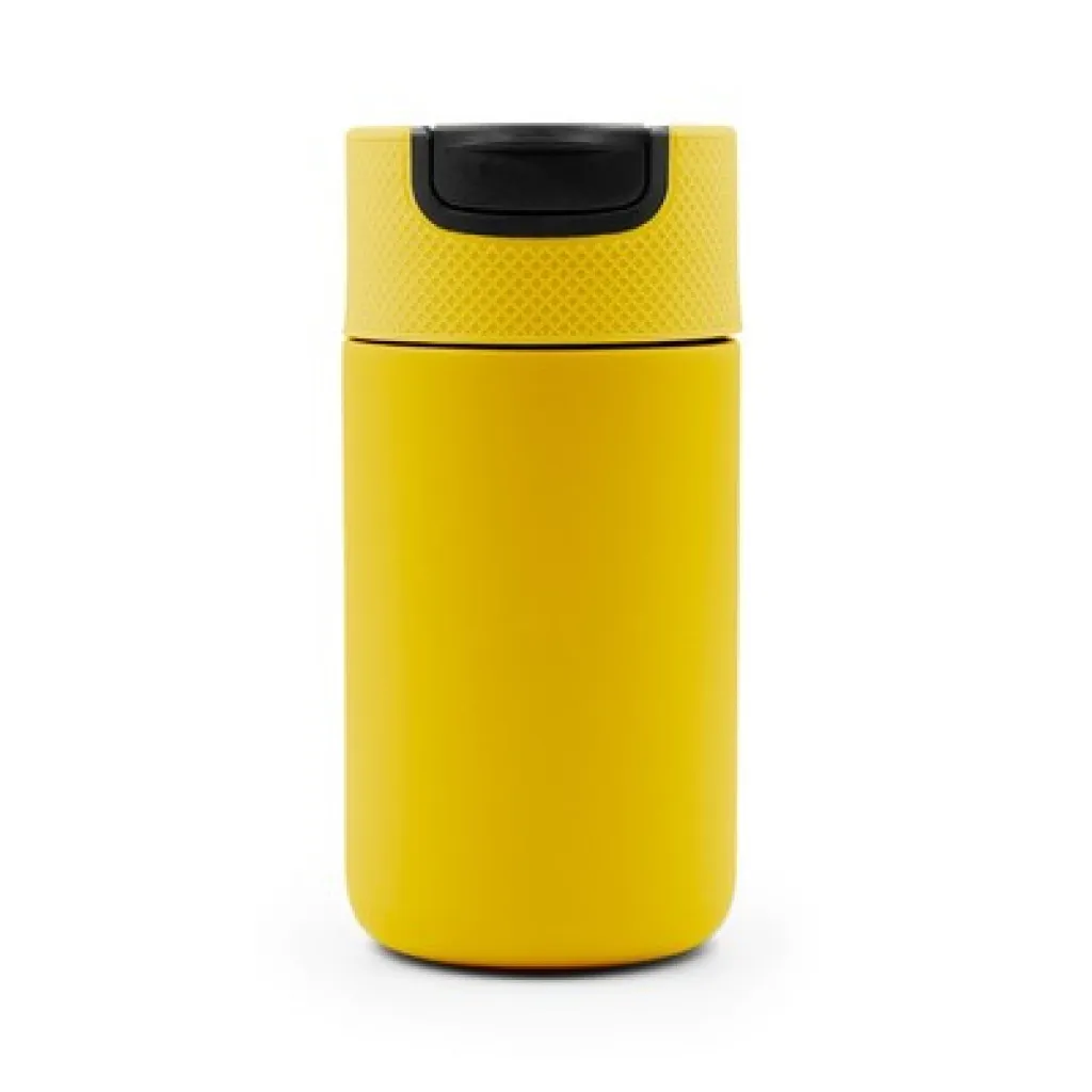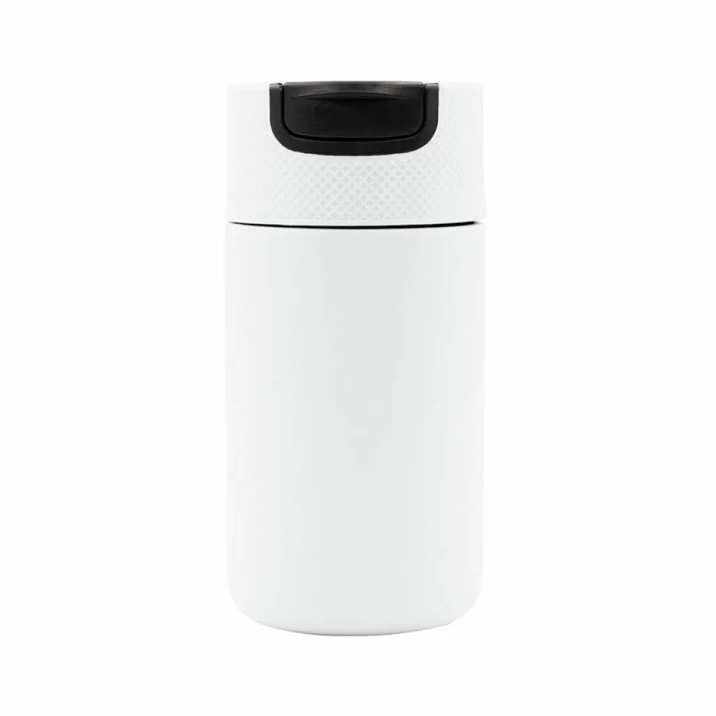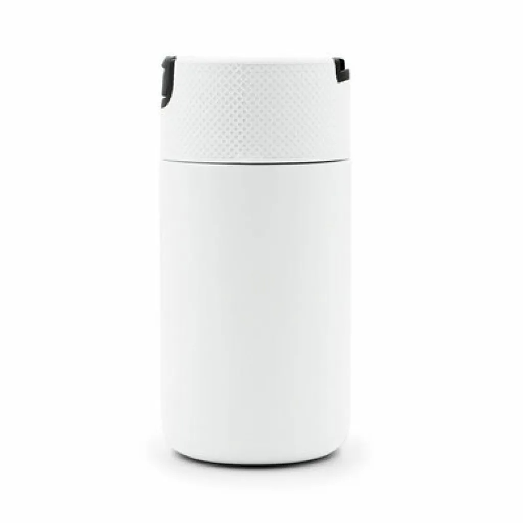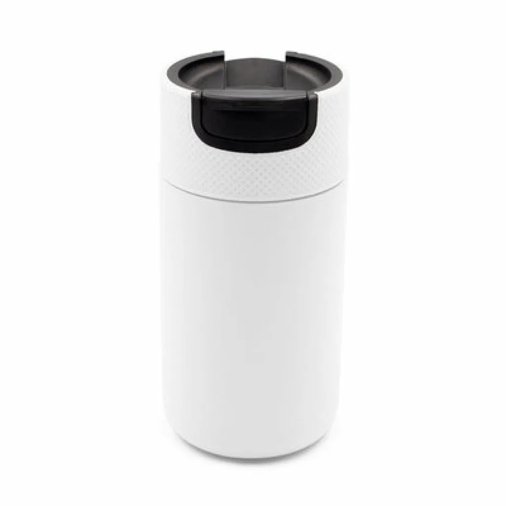 Thermo mug 400 ml, double vacuum walled, stainless steel inside and outside, plastic lid, suitable for single hand operation, mat finish, thermal insulation class: C +leakproof