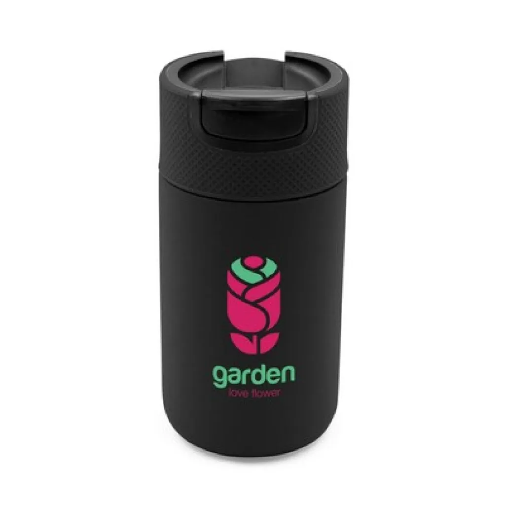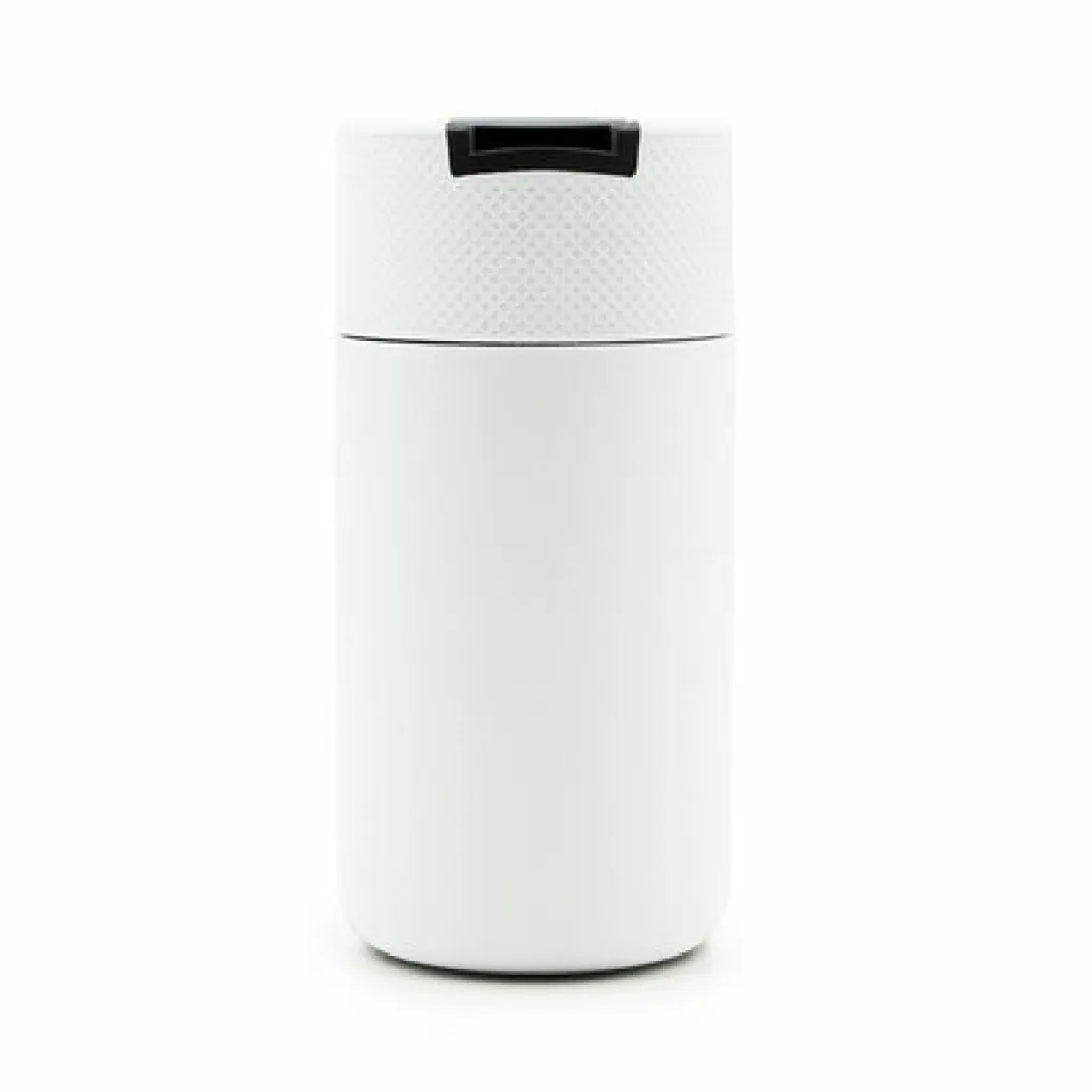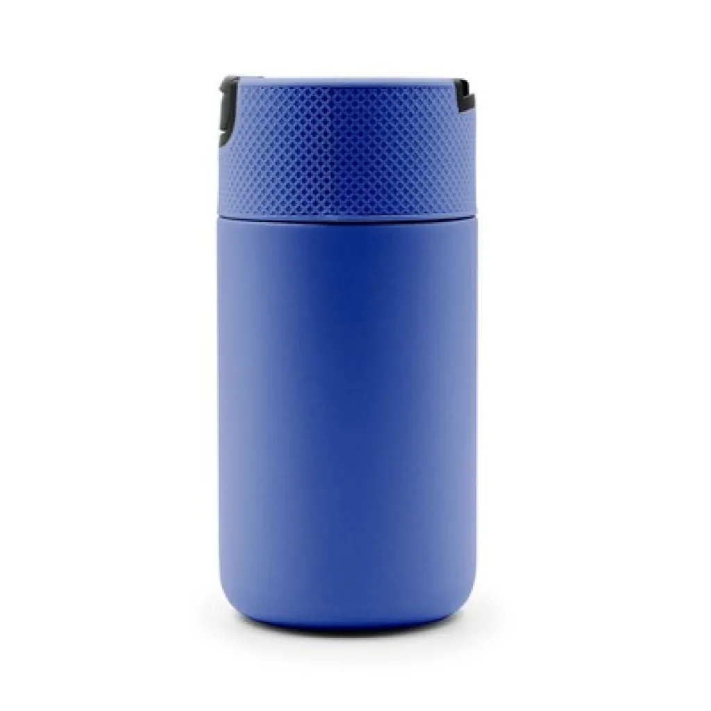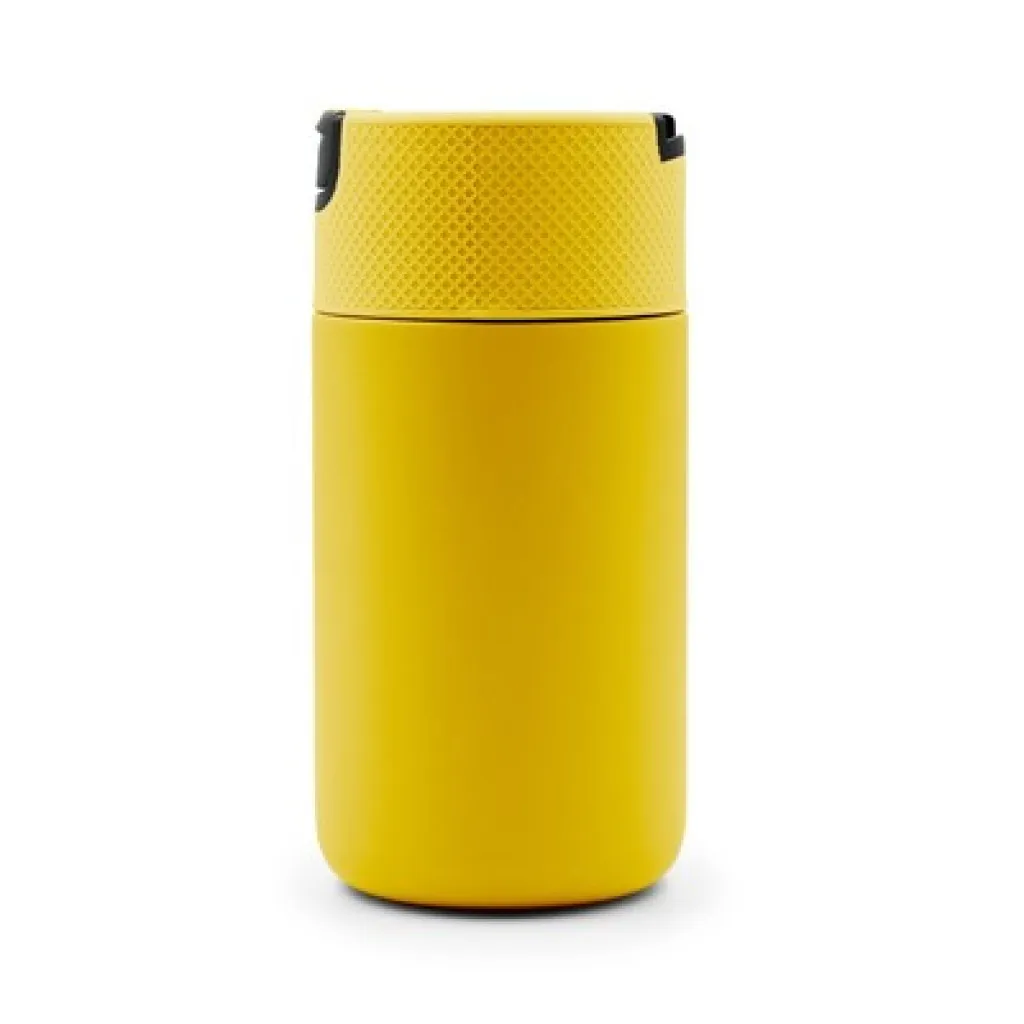 Thermo mug 400 ml, double vacuum walled, stainless steel inside and outside, plastic lid, suitable for single hand operation, mat finish, thermal insulation class: C +leakproof