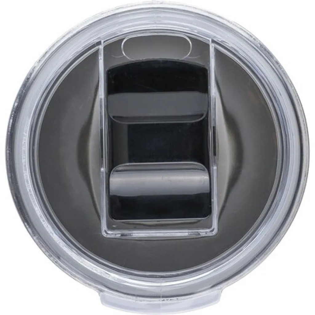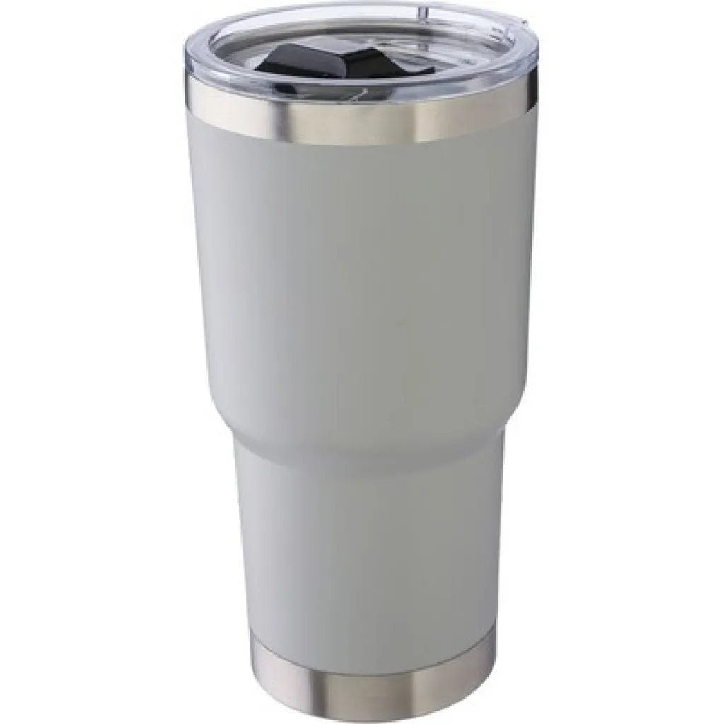 Thermo mug 590 ml features recycled stainless steel double walls that slow down the release of temperature to the surroundings, plastic lid with a closure enabling one-handed operation, packed in brown carton box