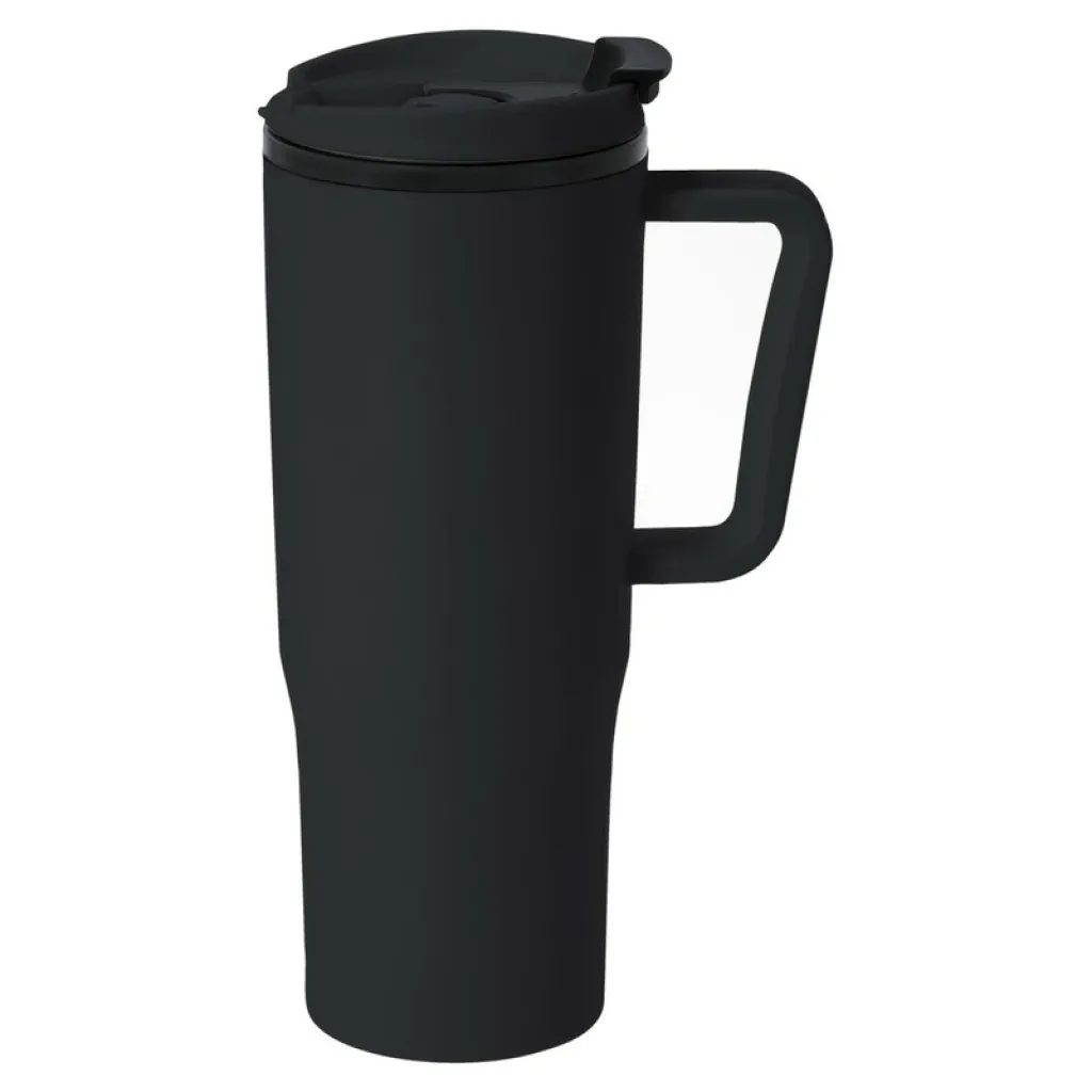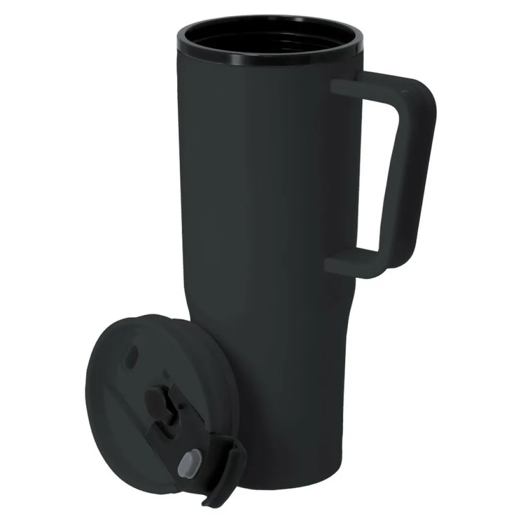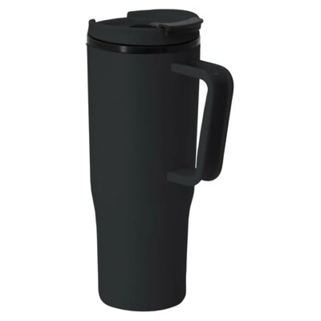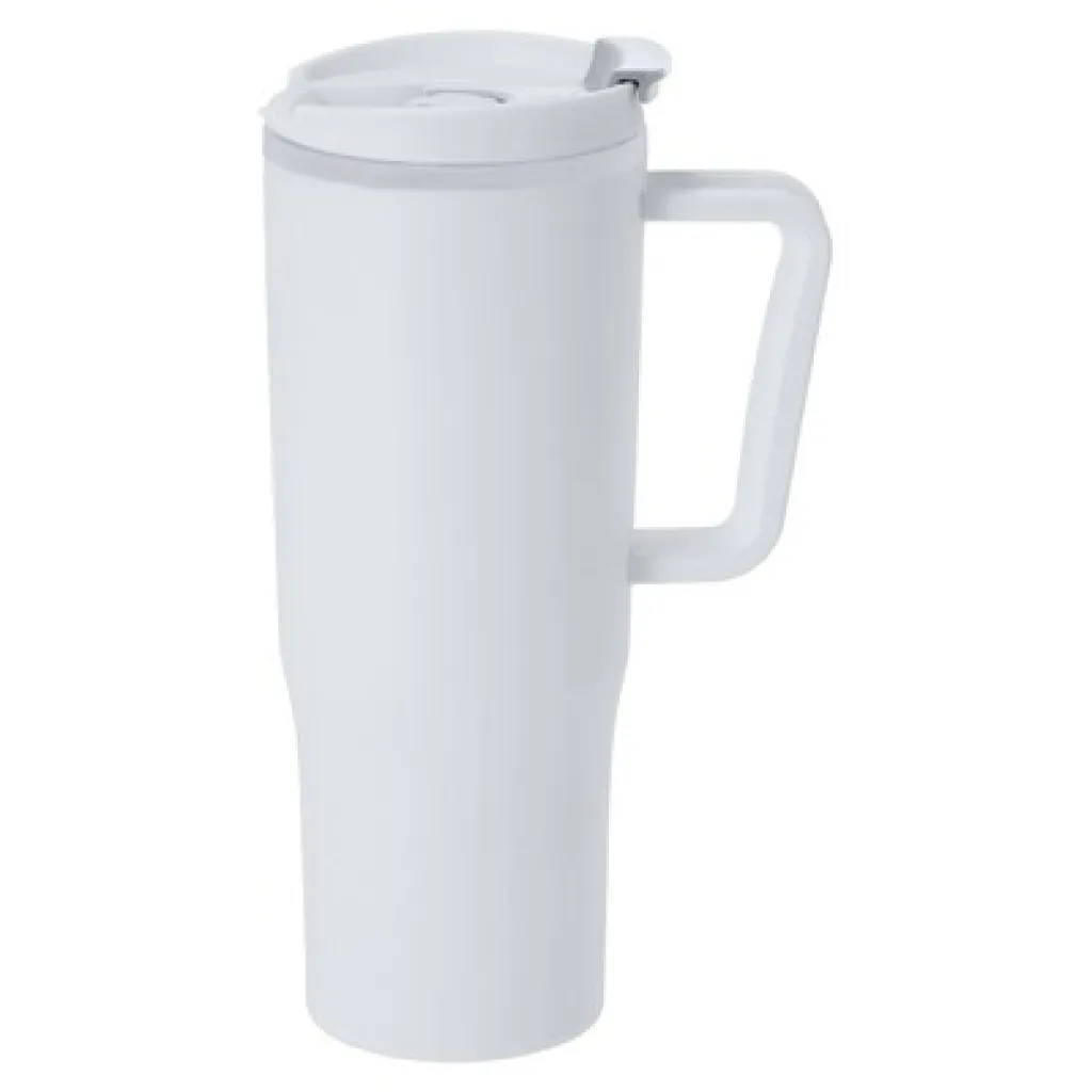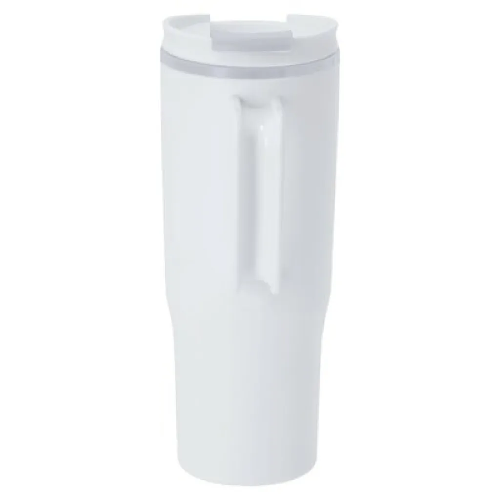 Thermo mug 800 ml, has a lid, handle and straw hole, features stainless steel double walls with vacuum insulation that slow down the release of temperature to the surroundings, functioning like a thermos, product made from recycled PP.