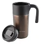 Stainless steel, single wall thermo mug with plastic drinking lid and handle, 330 ml. Delivered in black carton gift box. André Philippe brand product.