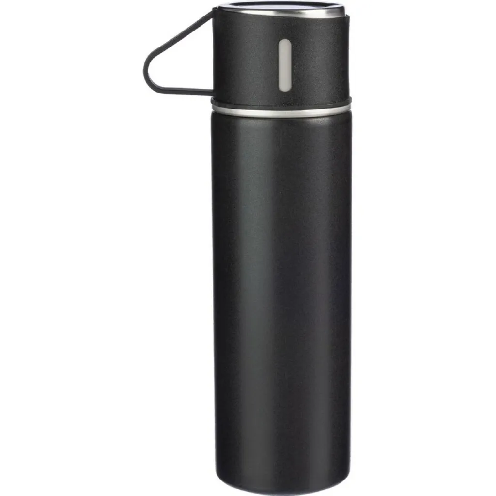 Thermos 420 ml with two three 150 ml included, features stainless steel double walls with vacuum insulation that slow down the release of temperature to the surroundings, the cap functions as a cup, allowing for convenient and hygienic sharing of the beverage, set packed in a brown box, product made from stainless steel, thermal insulation class: A +leakproof.