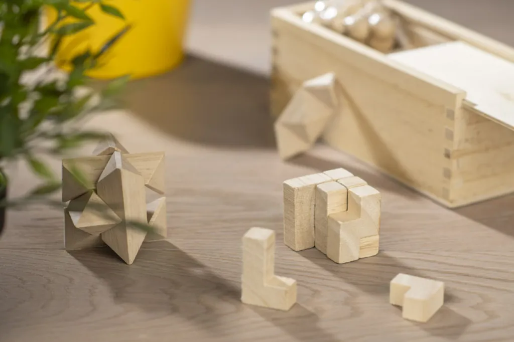 A set of three eco, logic puzzle games. The set is packed in a box made of wood.