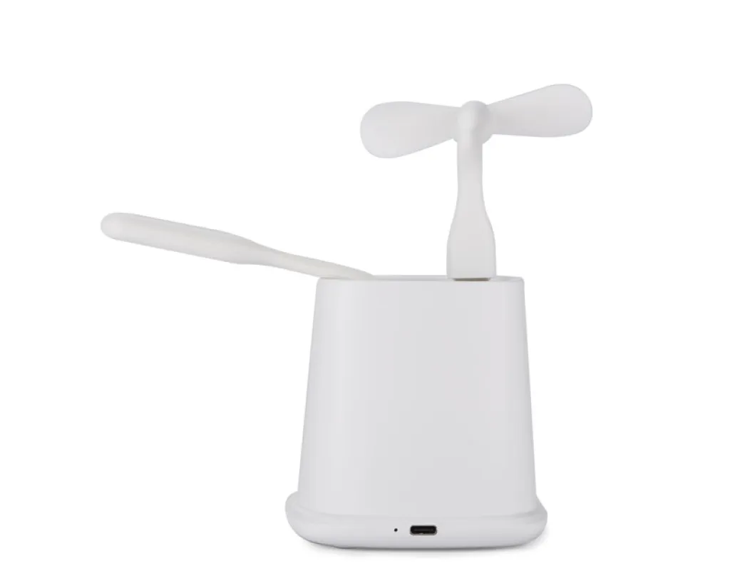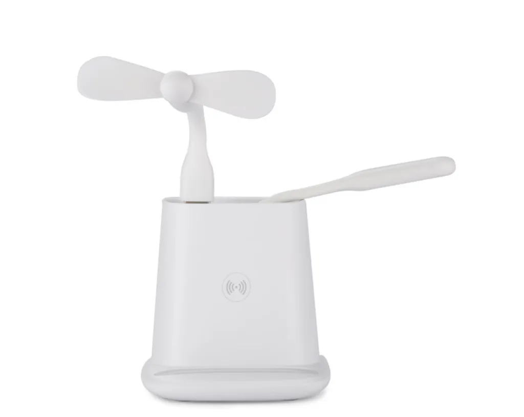 The BERGO desk accessory is the perfect gadget for desk work. It has a built-in wireless charger, which also serves as a stand for the phone, one USB port to power the accessories included with the product: a fan or a lamp, and a USB type C port to charge the phone with the appropriate cable. When not using the accessories, the USB port can function as a hub. Specifications: USB Type C input: 5V/2A, wireless charger output: 5W, 2 outputs: USB type A and USB type C: 5V/2A (max.)