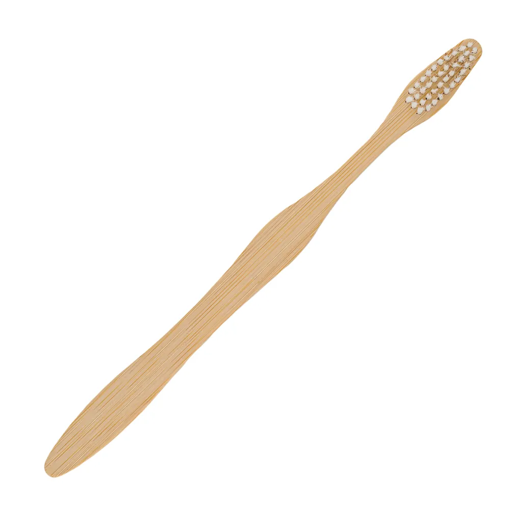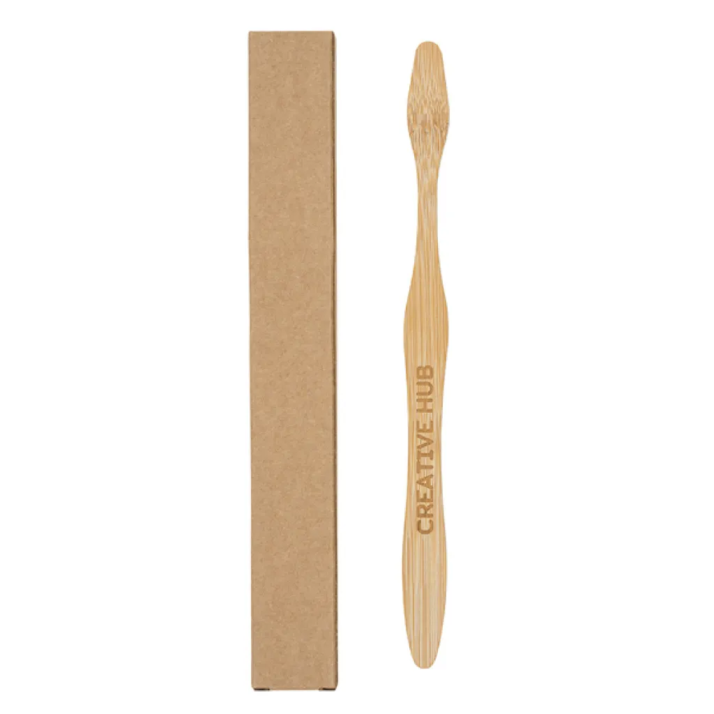 Bamboo toothbrush. Packed in a brown cardboard box.