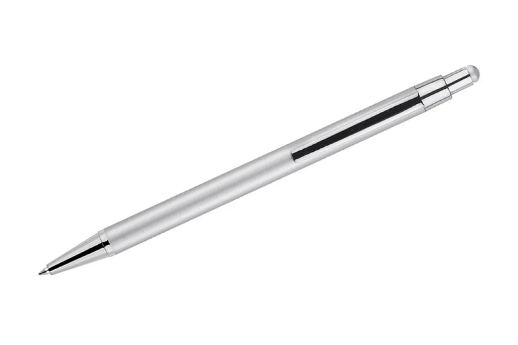 DAWEI is a classic thin pen made of metal in calm tones for lovers of timeless universal design. At the top, touch tip for touch screens in colour matching the barrel. An automatic pen. X20 type blue 1.0 mm-thick refill.