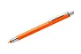 Metal pen with a function of a touch pen. The corpus is made of aluminum covered with paint in vivid colors. The tip with a special rubber allows operation of touch screens. Insert in blue.