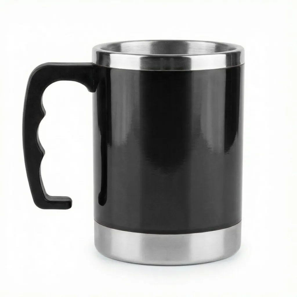 Travel mug 400 ml, double walled, stainless steel interior, plastic lid and handle
