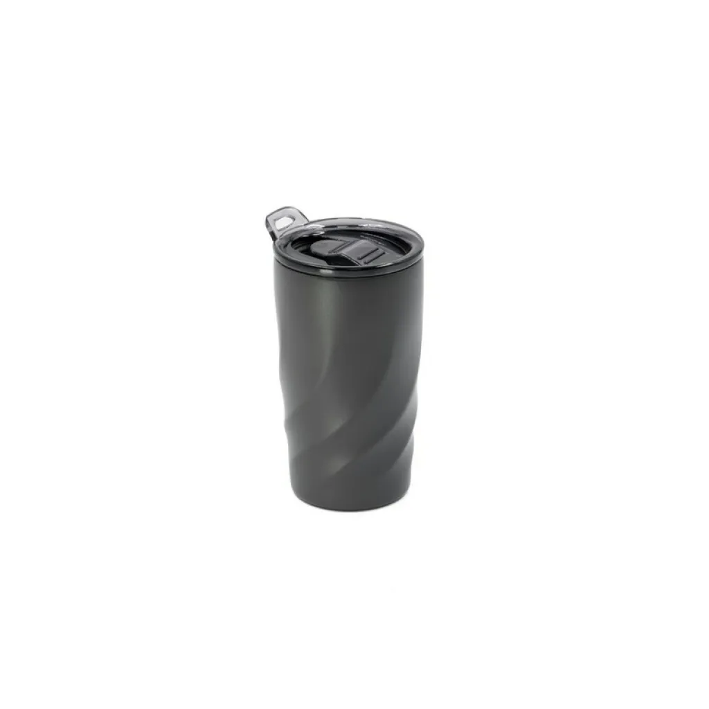 The Vortex Calix Ceramica travel mug is crafted from recycled stainless steel with a ceramic coating, blending eco-luxury and functionality. Its ceramic interior ensures the purest flavors for your coffee and tea, while being odorless, durable, and easy to clean. The 400 ml tumbler offers both quality and environmental stewardship. The screw-on, leak-proof lid accommodates frothy beverages and features a carrier loop for added convenience. This allows the attachment of a crossbody carrying belt for a hands-free experience, making it a perfect companion for eco-conscious individuals.