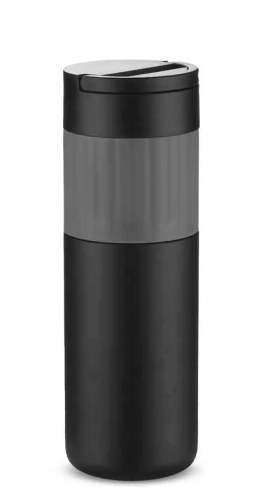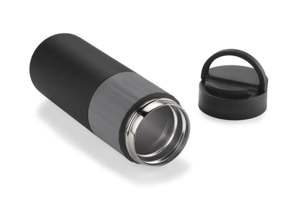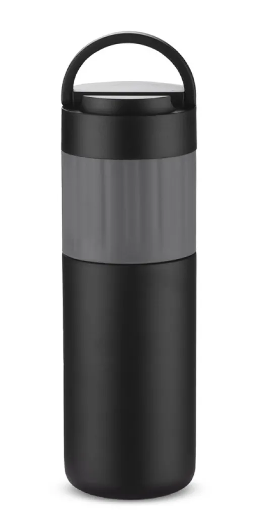 The HOLDEN thermal bottle, thanks to the vacuum between the walls, keeps the temperature for approx. 12 hours. It is made of 304 stainless steel. It has a comfortable silicone grip. The cover is made of plastic and can be used as a telephone stand.