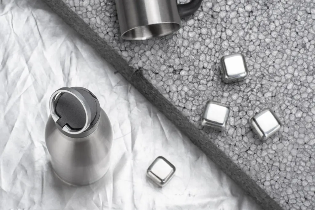 The BONITA thermal bottle is made of high-grade 304 stainless steel. It features a vacuum between the walls, which maintains beverage temperature for up to 10 hours, and a seal ensures a leak-proof seal. The plastic cap has a steel handle.