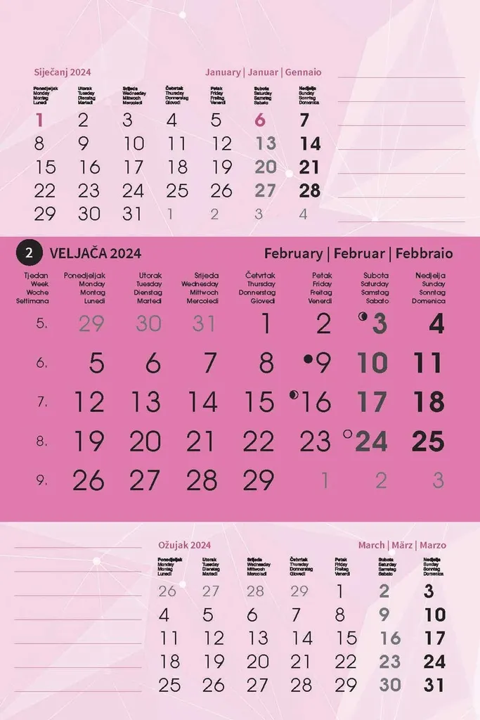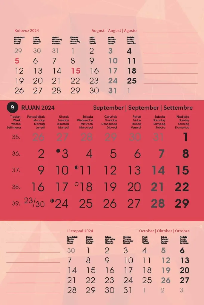 "TRODJELNI STOLNI VERTIKALNI" 12 sheets, format: 10x19 cm, desk calendar, P/50
