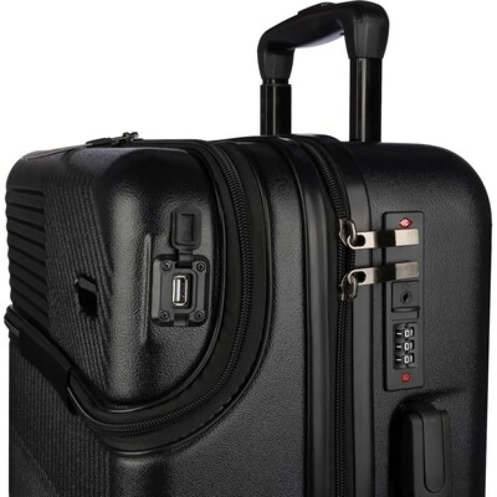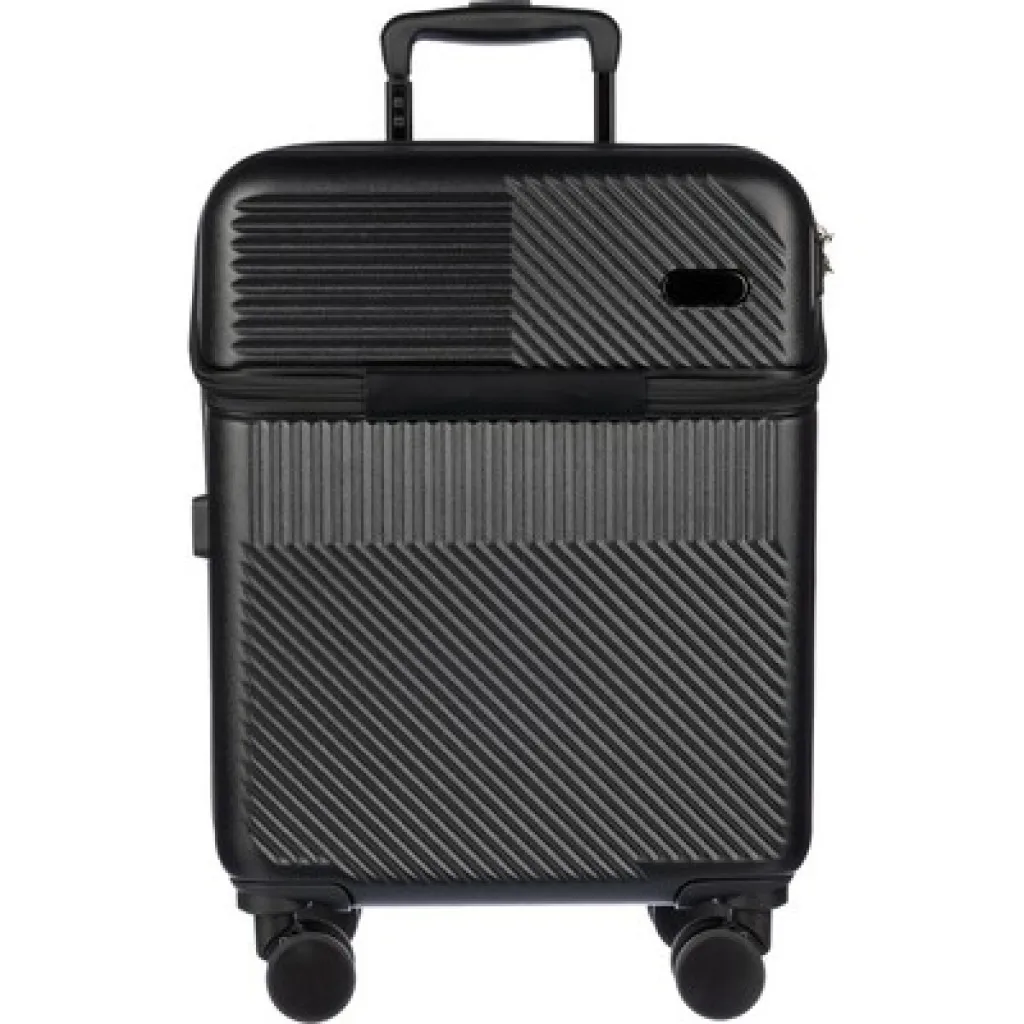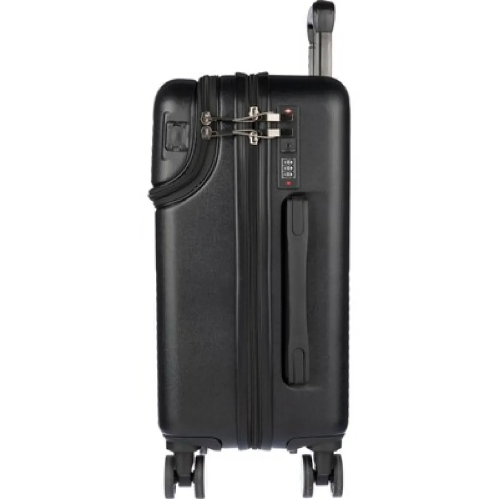 Trolley bag, zippered front laptop pocket, suitable for travelling by coach, train, car or plane, 8 wheels, convenient three-level handle system, includes a number lock protecting against theft, product made from ABS.