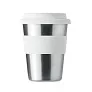 Stainless steel single wall tumbler with silicone lid and grip. Capacity 350 ml. As this is a single walled mug heat transfer can still occur.