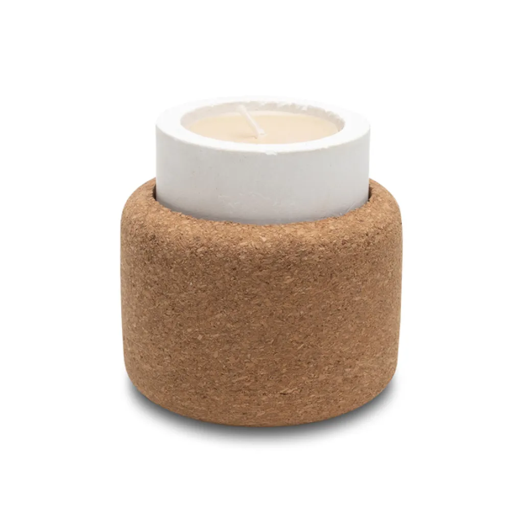 Unique ceramic and cork double-sided candleholder. Depending on the type of candle it can be used in two ways. One side is for tealight, the opposite for traditional long candle. Tealight included.
