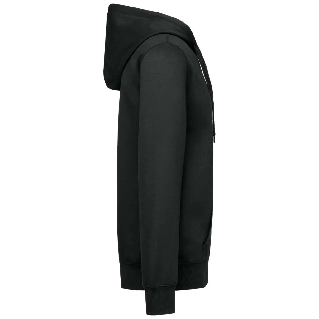 - 1x1 ribbing with a tubular assembly for a better finish on the neckline, cuffs and bottom hem