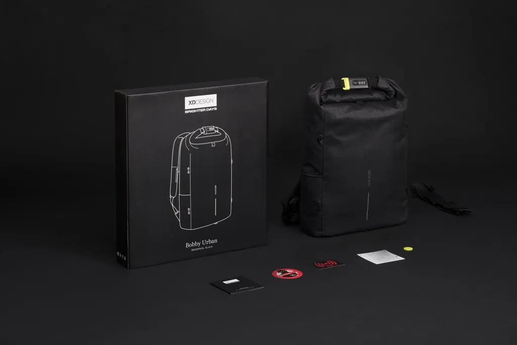 The Urban Lite anti-theft backpack is the perfect travel companion. The backpack can be completely closed by rolling up the main compartment and locking it with the steel reinforced combination lock. This function can also be used to lock the bag around a fixed object. There are hidden pockets on the backside and in the shoulder strap for cards, with RFID protection. The bag comes with a side water bottle pocket and detachable elastic net for your sports equipment. While on the inside there are padded compartments for a 15.6” laptop, tablet up to 12.9” and mesh pockets for your other belongings. Registered design®